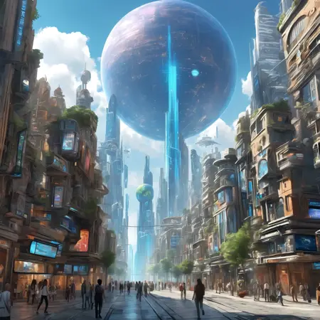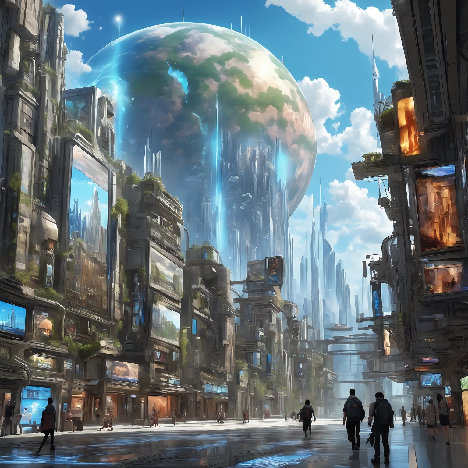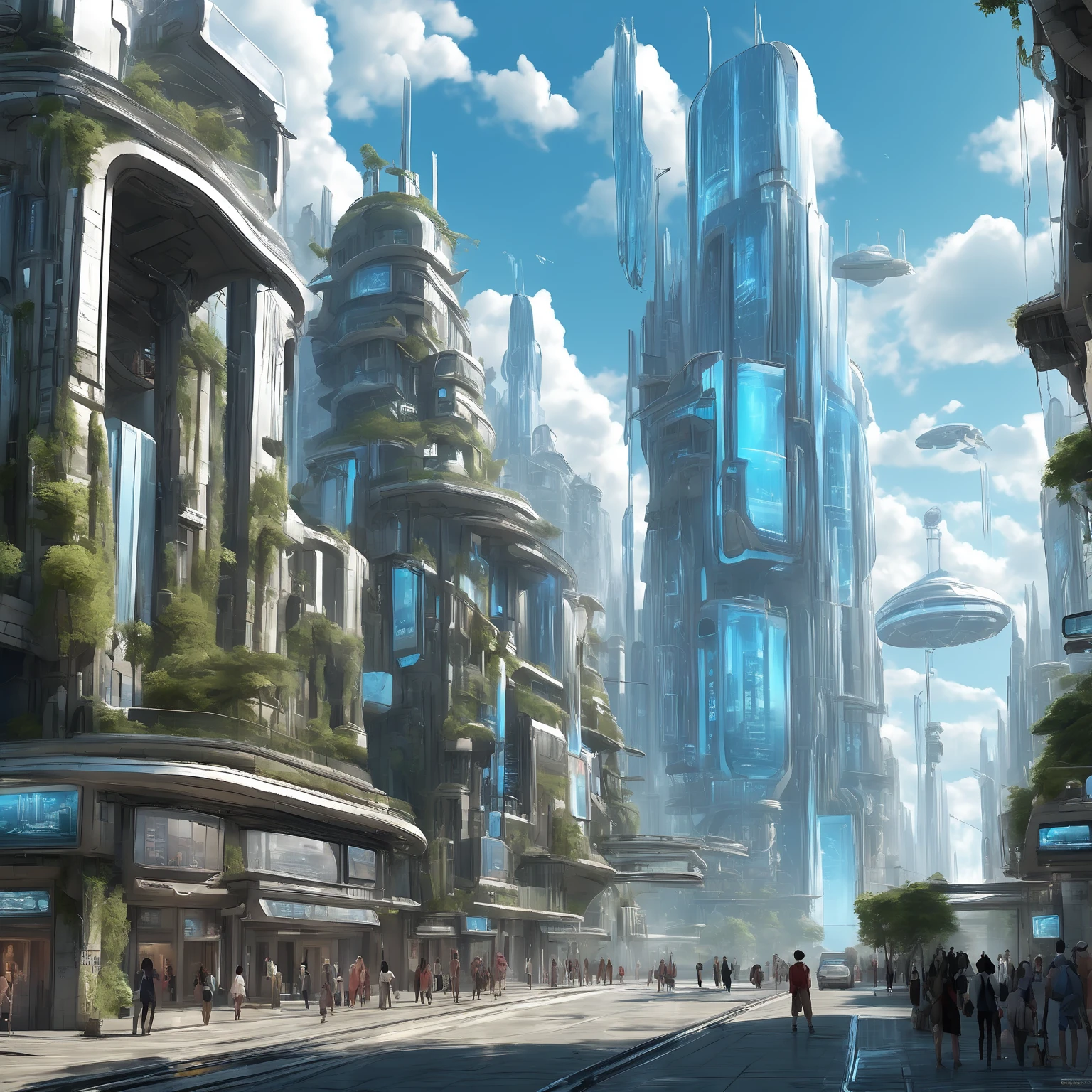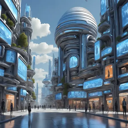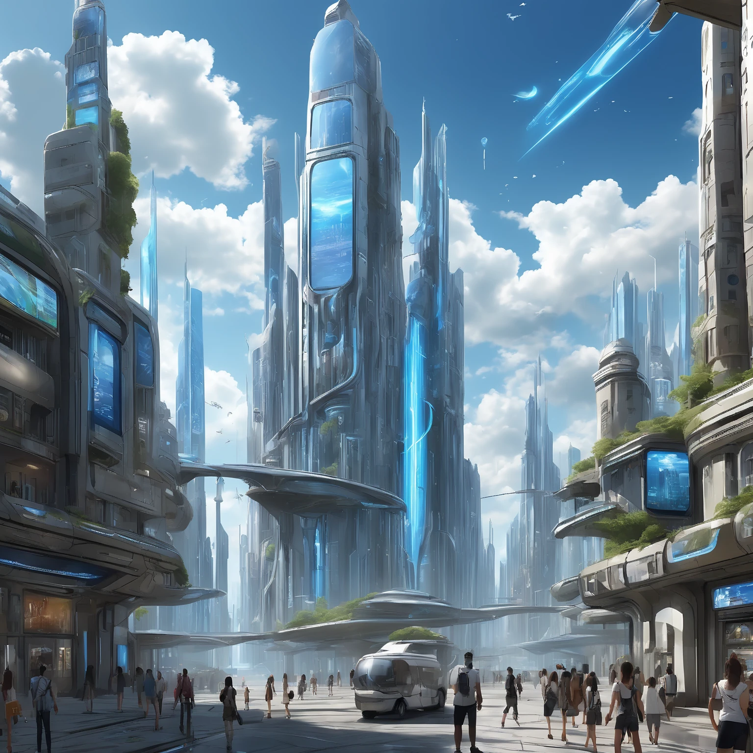 Made from a set of 40 or more images of concepts of cities for an era around 4000, lots of towering buildings, air cars and hologram pollution pushing into peoples minds
