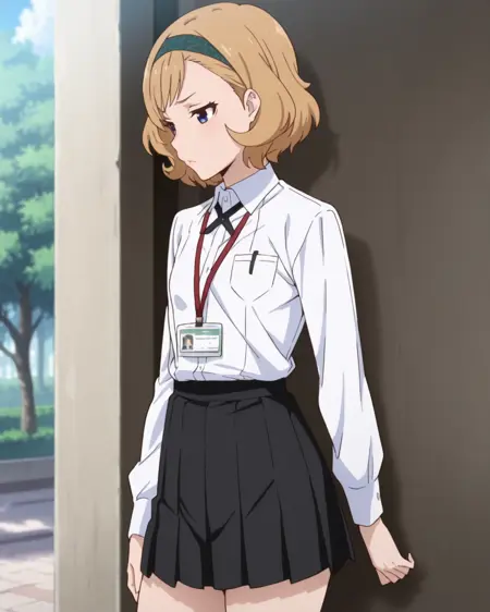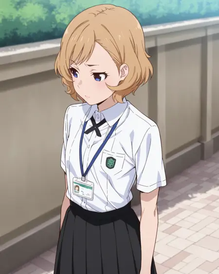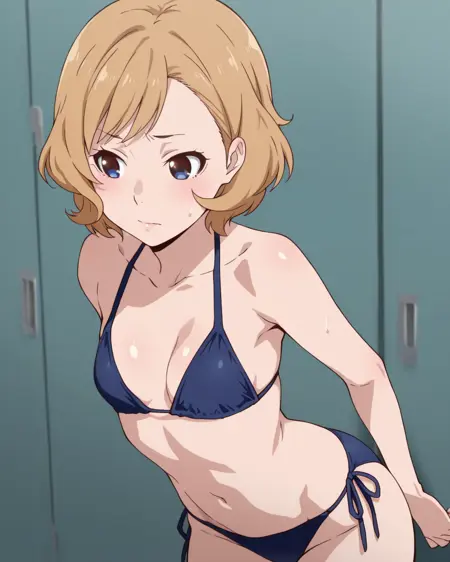 Itsuki Sumeragi, Itsuki, honey blonde hair, short hair, dark blue eyes, small breast, 1girl, solo