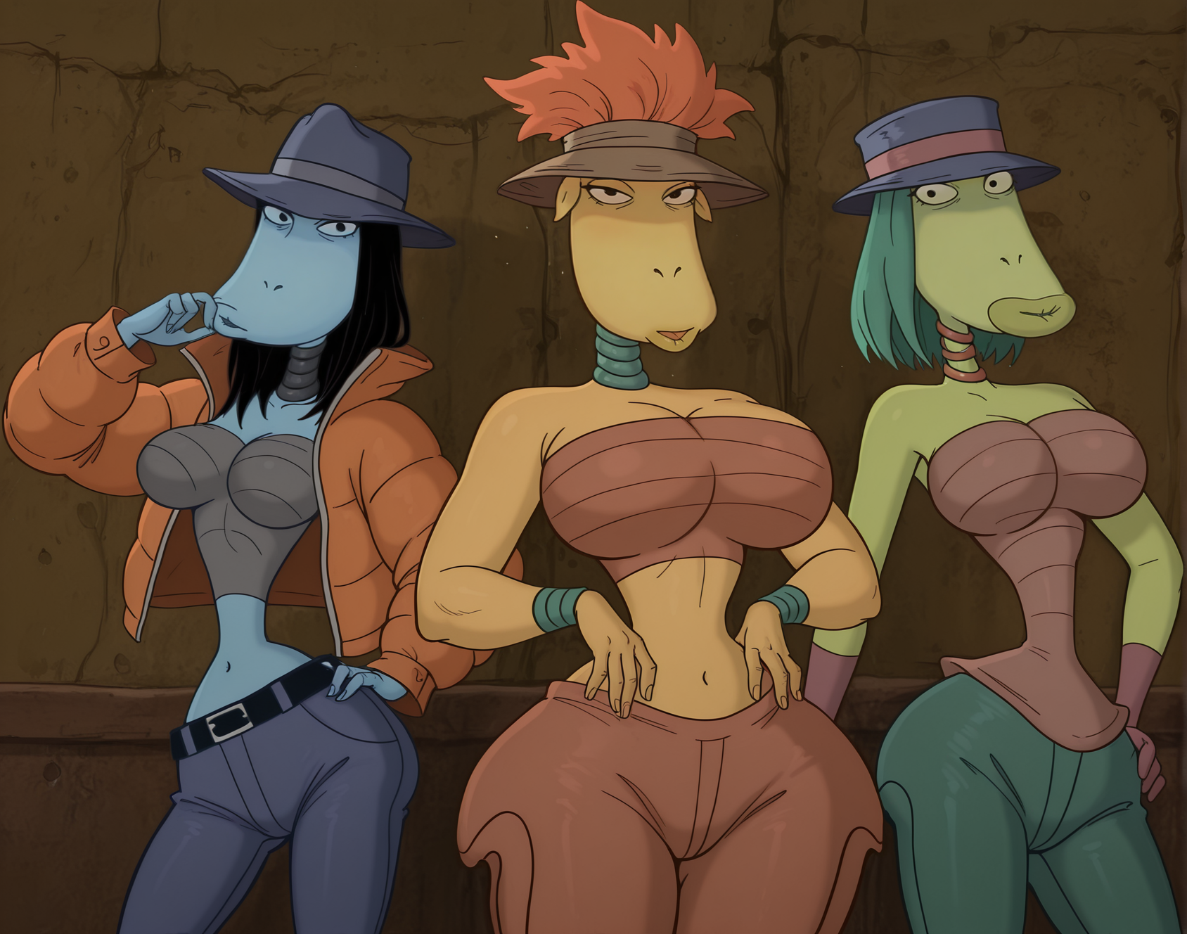 | トレーニングワード | koo_g4ls_al1ens, k00g4l1, female, long hair, black hair, not furry, slim, tall, solo, humanoid, blue skin, 5 fingers, puffy jacket, orange jacket, long sleeves, open clothing, navel, blue hat, tight bottomwear, jeans, standing, small waist, mouth closed, smile, looking away, black belt, cowboy hat, three-quarter portrait,コピーしました! koo_g4ls_al1ens, k00g4l2, female, medium hair, green hair, not furry, slim, tall, solo, humanoid, green skin, tight clothing, inside, small waist, bowler hat, medium breasts, elbow gloves, bare shoulders, wall, sitting, thick lips, front view, green pants, wide hips, neck rings, looking away, cleavage, hanging breasts, grey topwear, hands between legs, wide eyes, surprise, mouth closed, sleeveless,コピーしました! koo_g4ls_al1ens, k00g4l3, female, medium hair, ears down, not furry, hourglass figure, tall, solo, humanoid, tan skin, tight clothing, inside, orange hair, green bowler hat, big breasts, green wristband, bare shoulders, three-quarter portrait, pants, wide hips, green neckwear, looking away, cleavage, grey topwear, parted lips, 4 fingers, hand on hip, midriff, navel, lidded eyes, pose, upper body, sleeveless,コピーしました! |