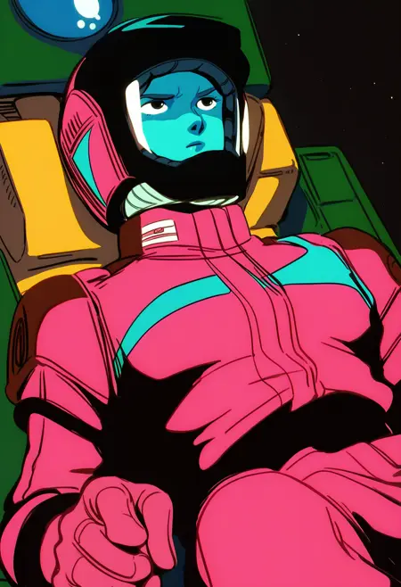 pink helmet, pink gloves, pink spacesuit, pink boots,