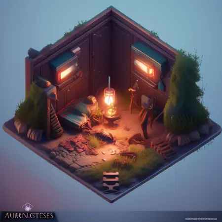 0xisometric, 게임룸, 빨간색, LED 조명 방