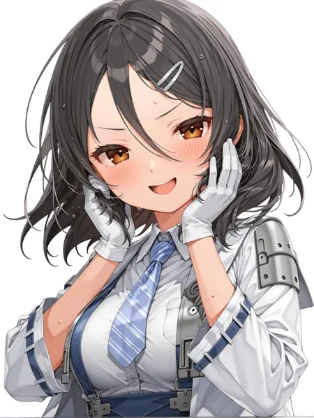트리거 단어 ・inagi_kai_2, 헤어 장식, 검은 머리, 트윈테일, 헤어클립, 갈색 눈,