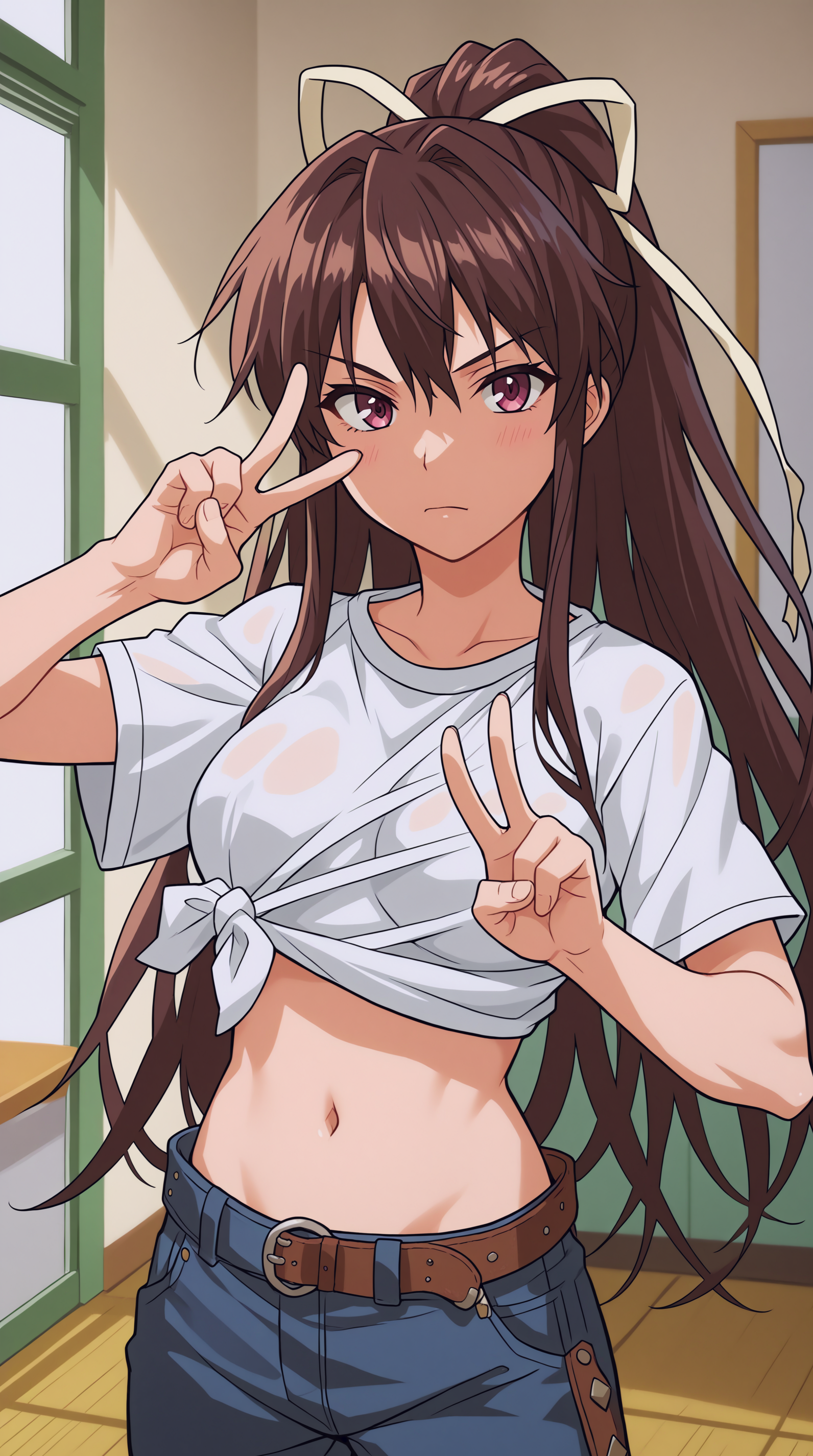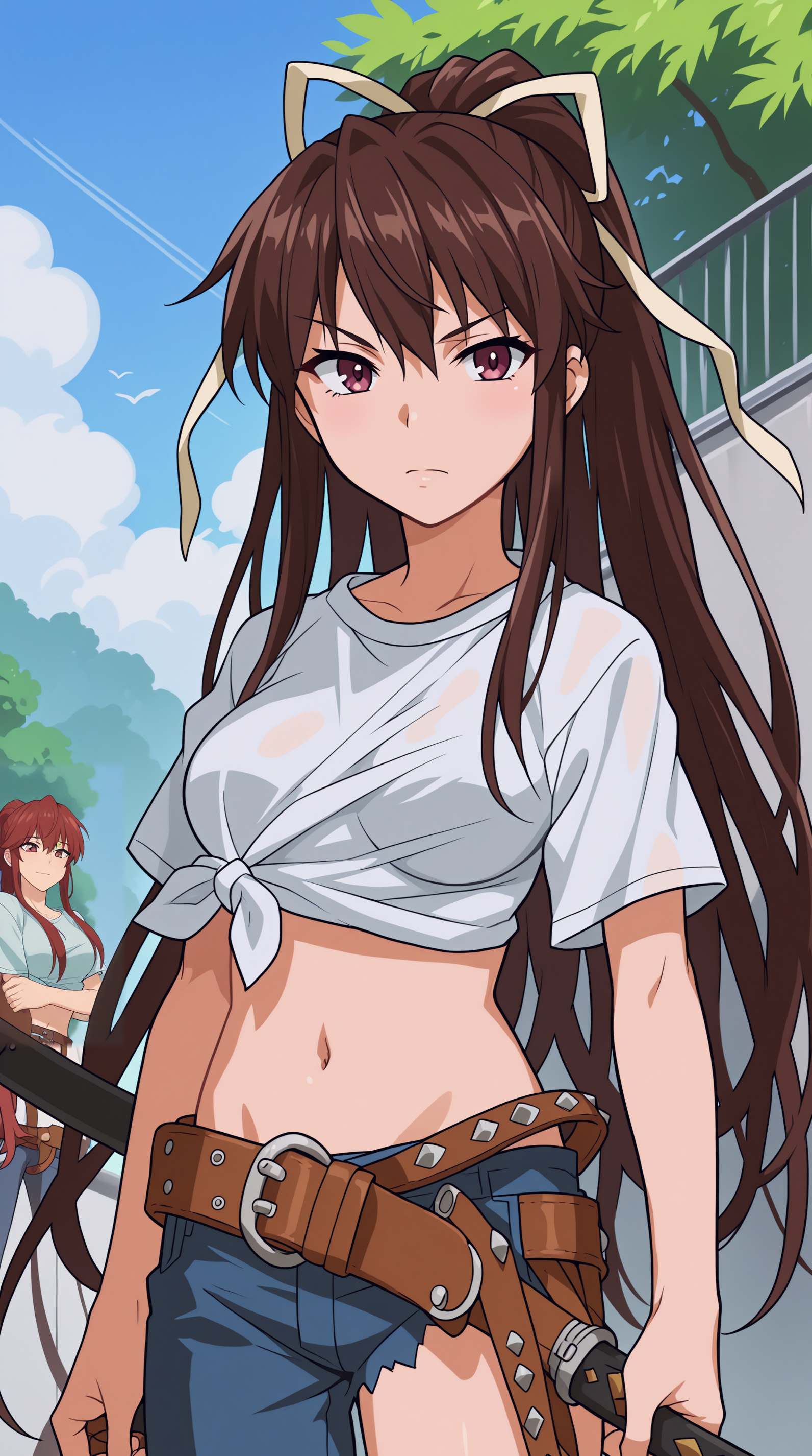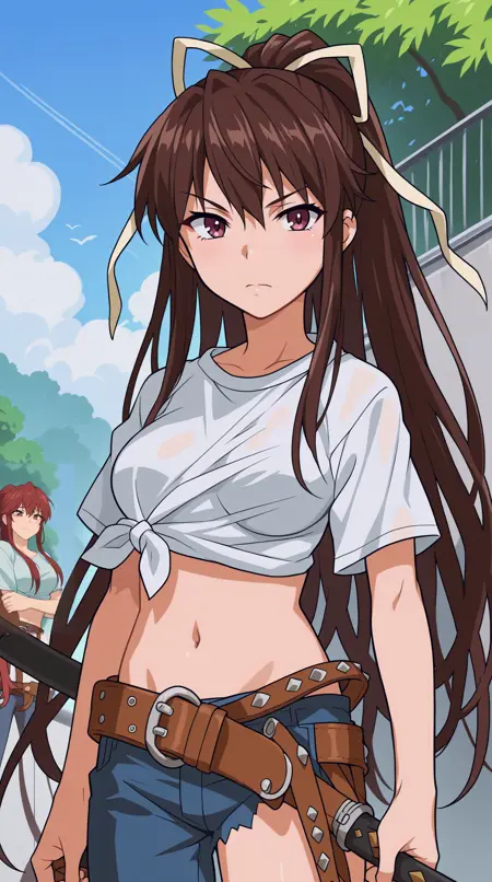 Optionnal Words: boots, belt, denim, asymmetrical clothes, tied shirt