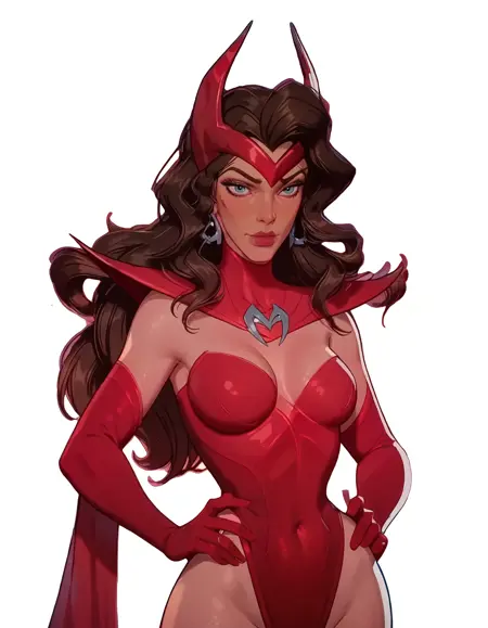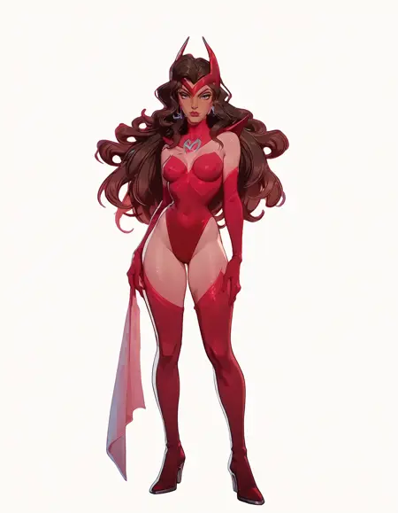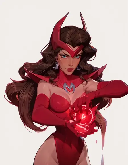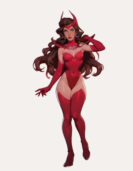 このスキンは、Marvel Rivalsのスカーレット・ウィッチが着用する「邪悪な目を持つ魔女」の衣装を特徴としています。この衣装は単に「Witch of the Evil Eye Outfit」とプロンプトするだけで呼び出せ、追加のアクセサリーは、肯定的および否定的なプロンプトを通じて必要に応じて強化または削除できます。