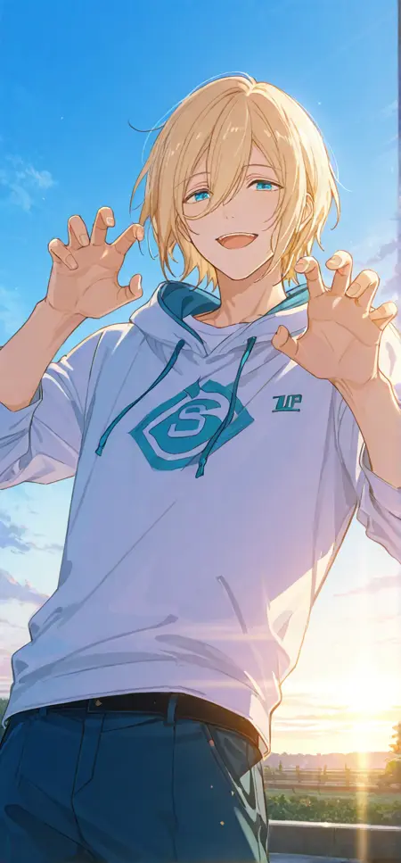 트리거 단어: tenshouin eichi, 금발, 눈 사이의 머리카락, 파란 눈