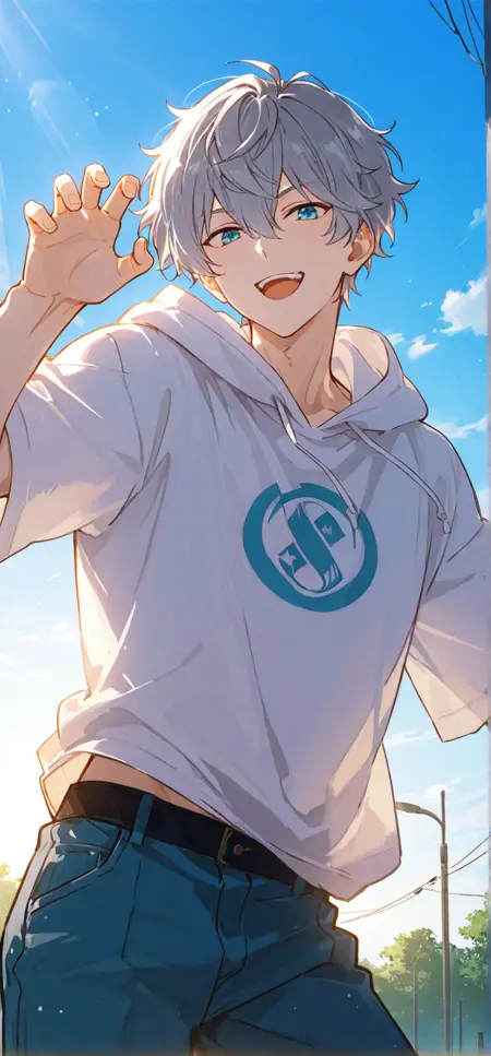 Trigger words: sena izumi,short hair,grey hair,hair between eyes,blue eyes