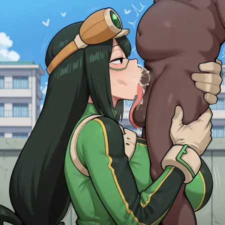 Positive Prompts: SijiBGF, 1girl, 1boy, sex, side view, oral fellatio, blowjob, tongue out blowjob, deepthroat, larger female, size difference, unseen male face, female focus, hand on another's ass, female grabbing male's ass, ass grab, upper body, male standing