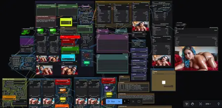 このワークフローは、2.1、VACE、FiPも含むもっと大規模なセットアップから大幅に精査したものだ。それらはあまりにもバグが多く、共有するには不適切なので、すべて2.2に統一した。これにより、どの操作でもモデルを変更する必要がなくなった。おそらくすべての余計な部分は取り除いたつもりだが、未使用の入力が残っている可能性もある。しかし、それらは問題を引き起こさないと思う。すべての入力の組み合わせを試したが、私の環境では問題なく動作している。ウィジェットを備え、注意が必要な部分はすべて明るい色で強調した。ただし、ワークフロー間での色の扱い方は不明で、おそらくカスタムノードに大きく依存するだろう。少なくとも、WF画像では色が見えるので問題ない。異なるモードを有効にしたJSONファイルも同梱した。曖昧さはなく、単に2回クリックするだけ。1つのボタンをオンにし、もう1つをオフにする。それだけだ。