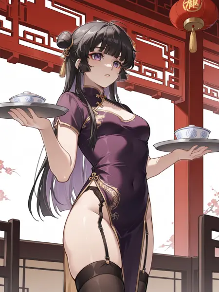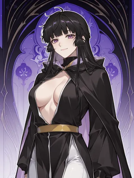 外观:ilbanyue,长发,黑发,紫色眼睛,小胸