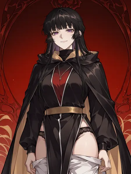 添加斗篷后,她的原始服装会显现(但并不十分准确)。更换服装时,在负面提示中加入高领。斗篷也可以添加。如果某些服装难以显示,可通过增加权重强制生成。