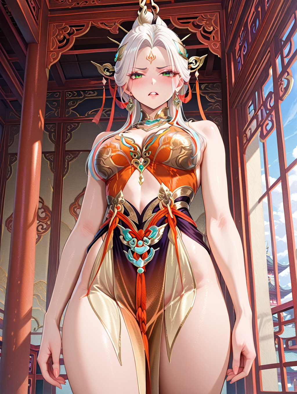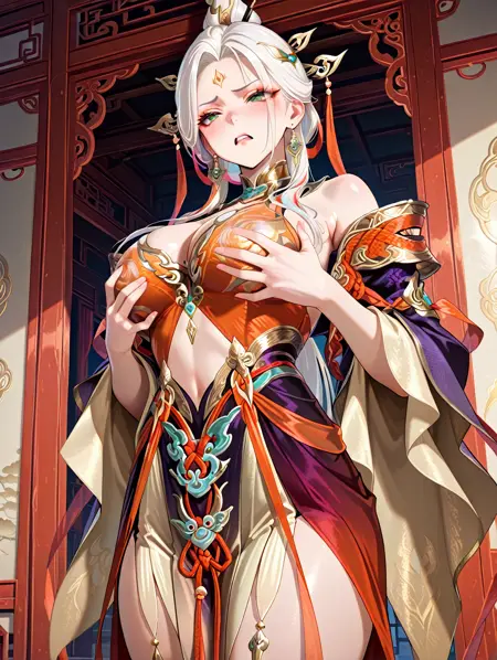 1. 13878w,bare shoulders,chinese-style wedge shoes,detached sleeves,wide sleeves,dress,pelvic curtain,
