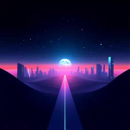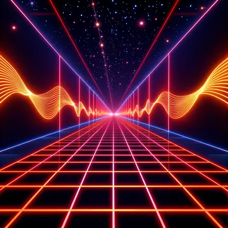 스타일: 분위기적, 초현실적, 네온 회로, 고대비