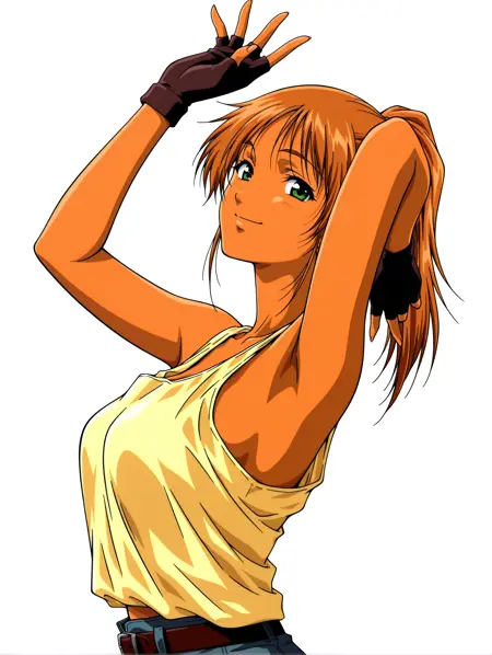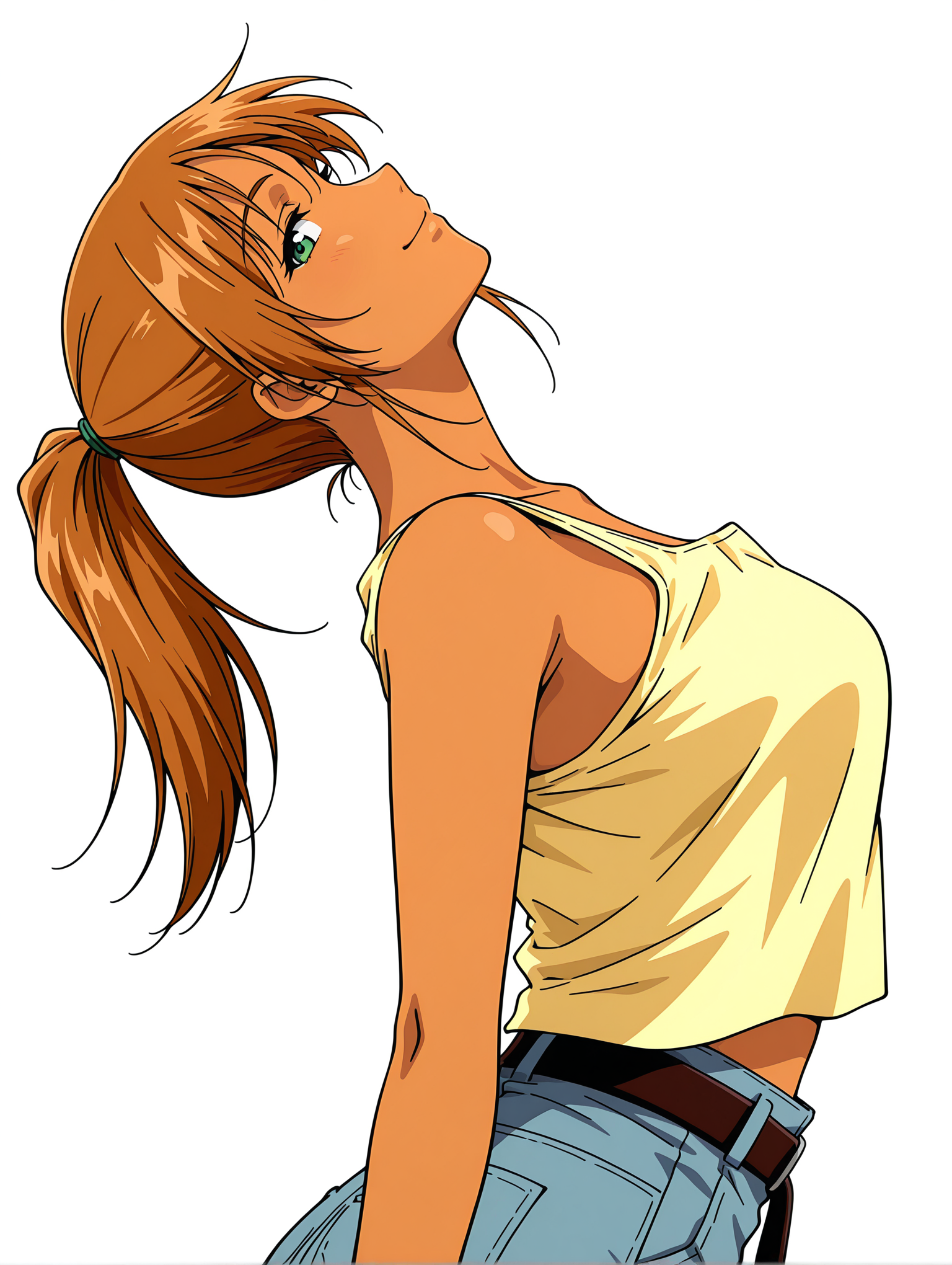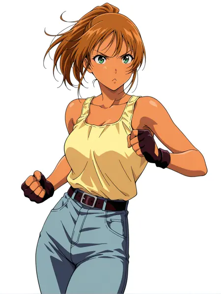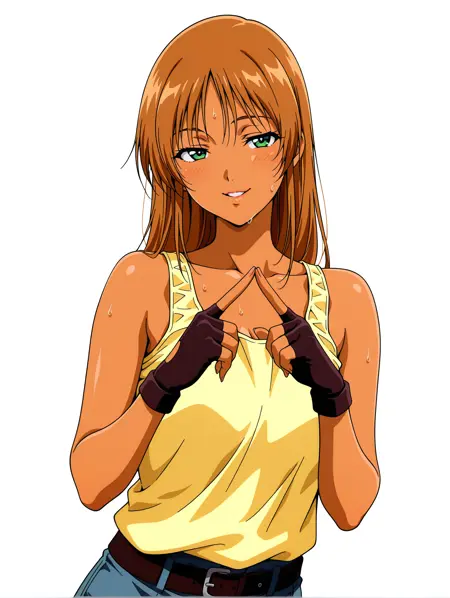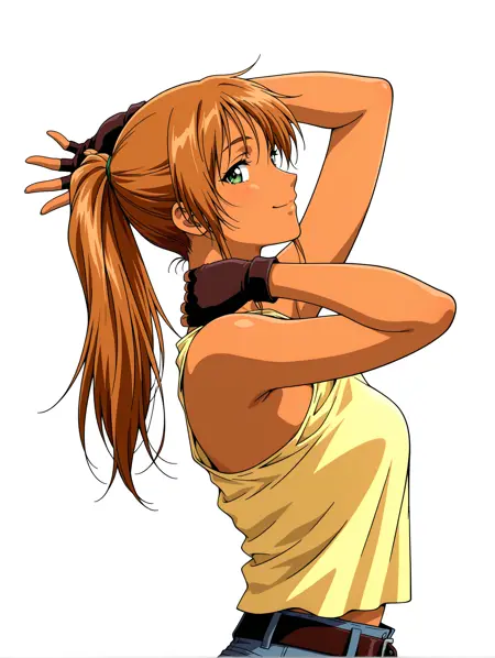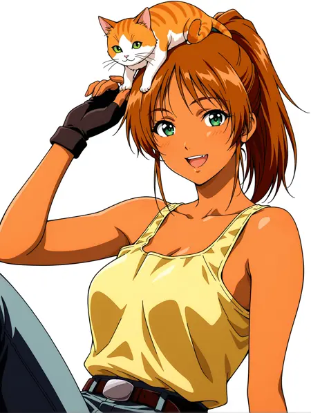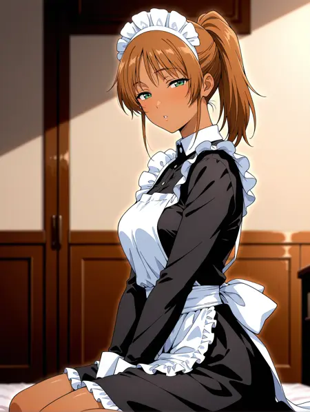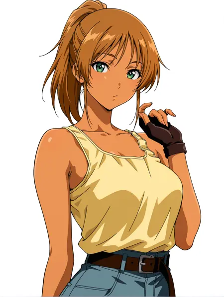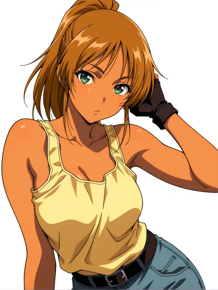 トリガーワード ・z_noel_L,ponytail,brown hair,green eyes,dark-skinned female,
