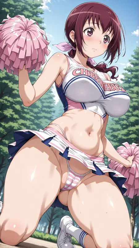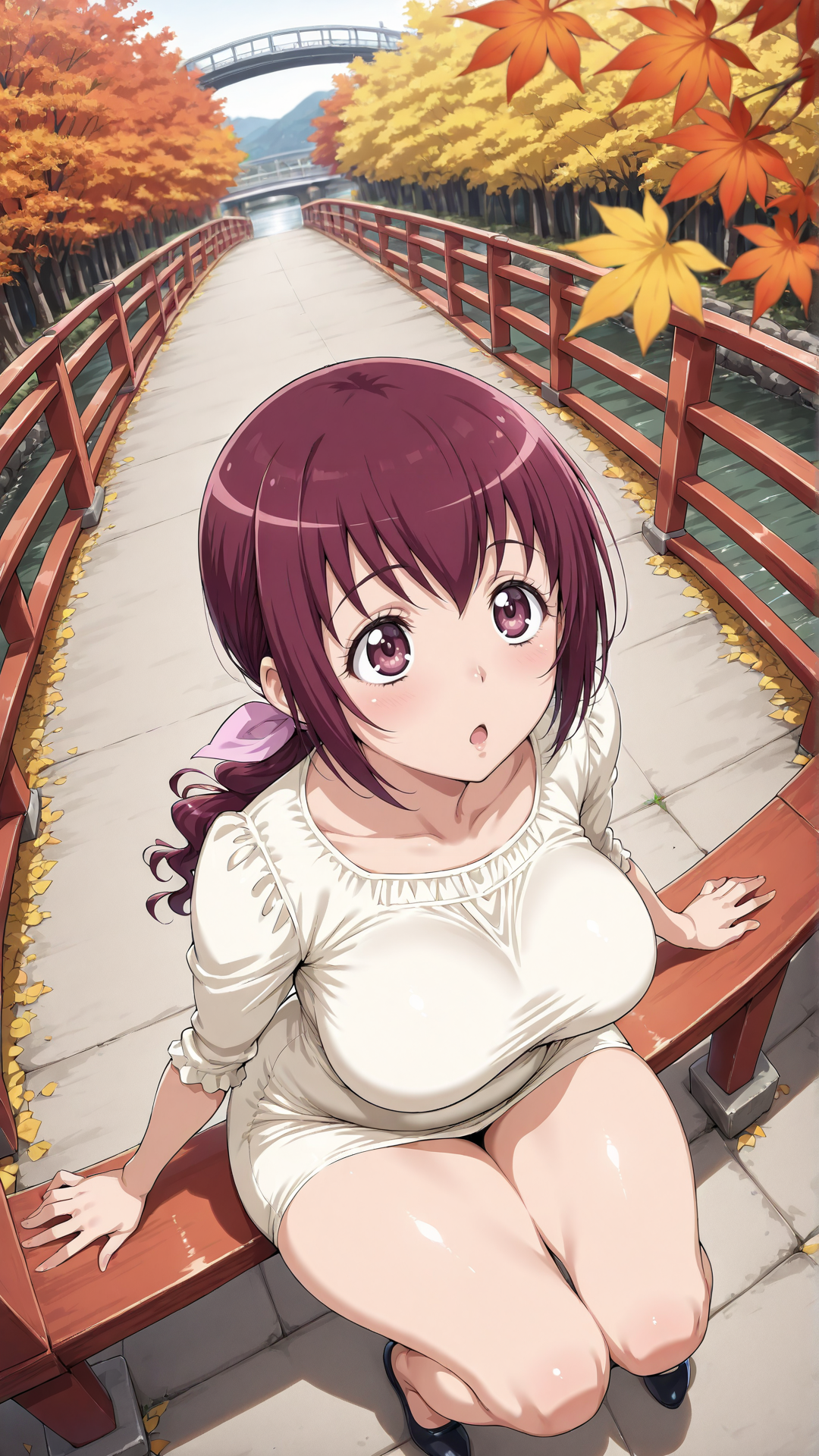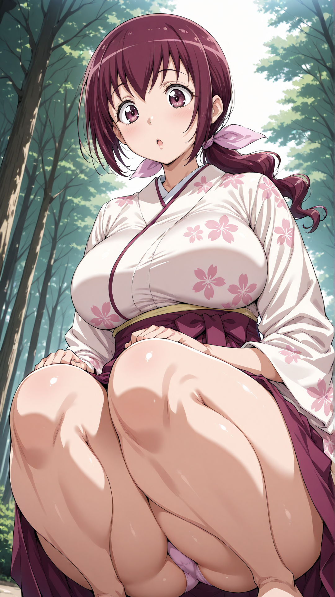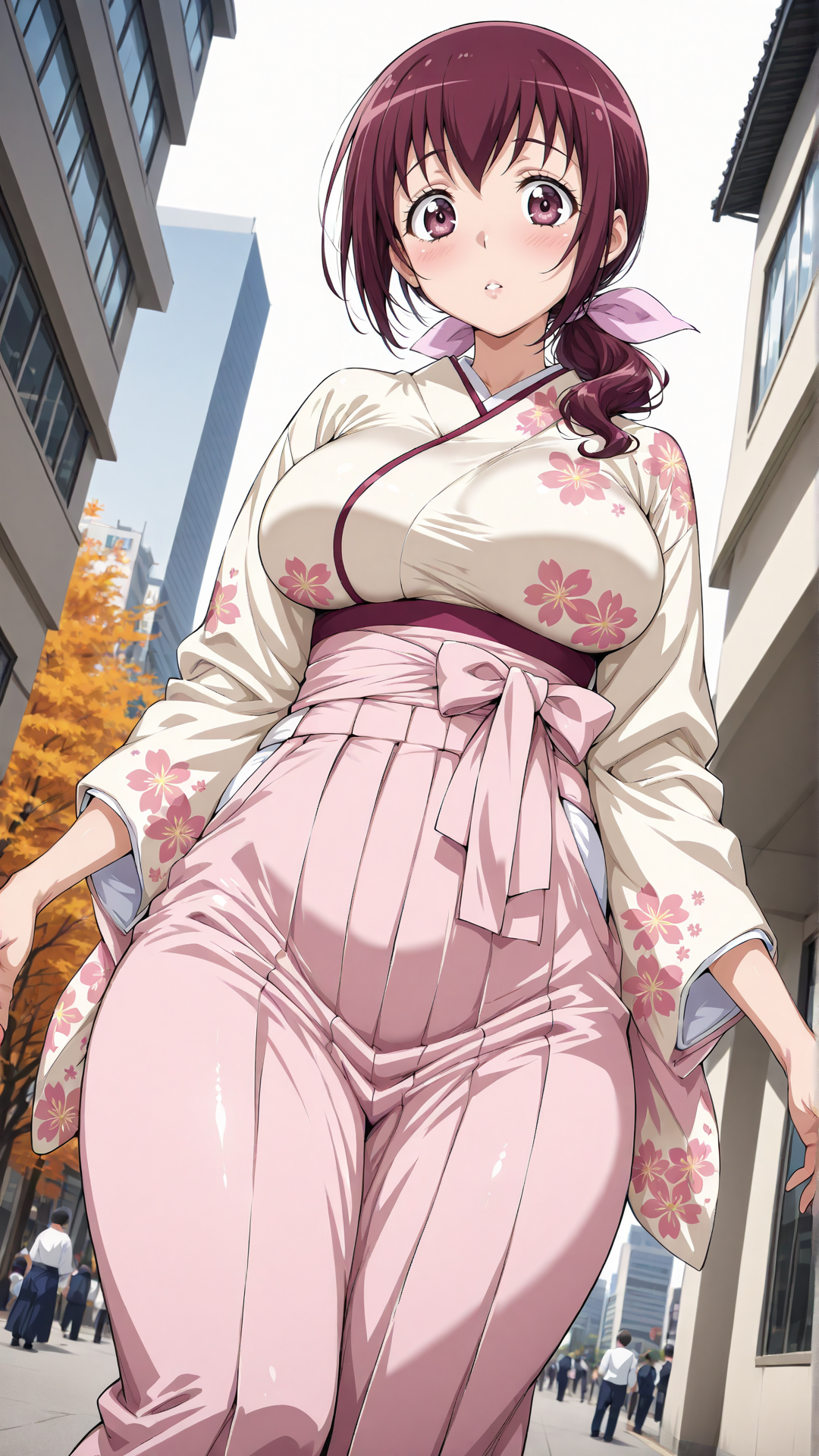 hoshizora ikuyo, maroon eyes, maroon hair, low ponytail, hair ribbon, pink ribbon,mature female, l