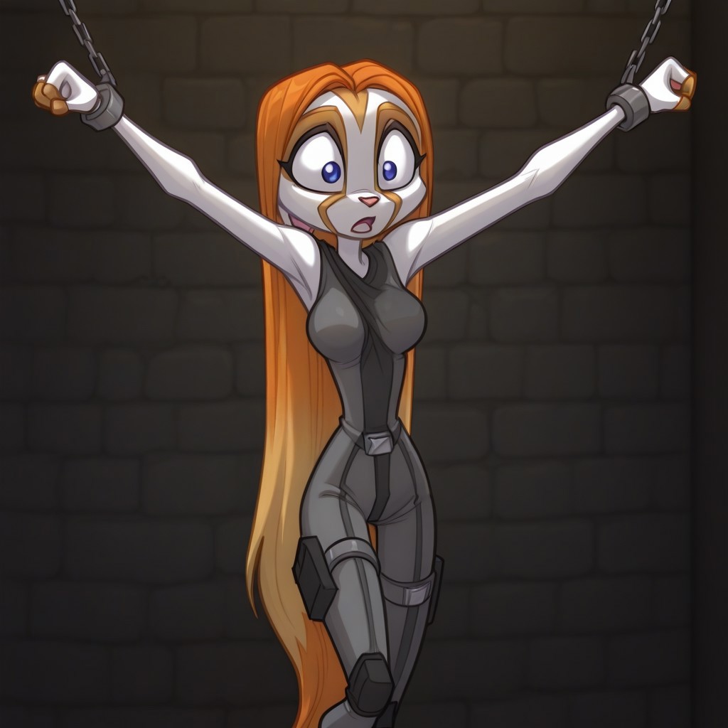 Jeneviv: jen, 1girl, furry, furry female, blue eyes, animal nose, blonde hair, white skin, animal ears, tail, golden facial features, golden eyeshadow,