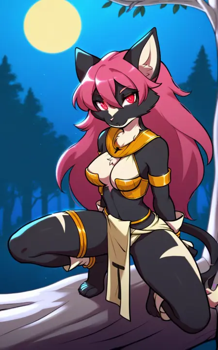 強化タグ: 裸足、尾、猫の尾、肩出し、腹部露出、フューリー、フューリーフィーマル、猫娘、動物の耳、猫の耳、動物の鼻、体毛、黒い毛皮、白い毛皮、多色毛皮、長い髪、非常に長い髪、ピンクの髪、眉間の髪、赤い目