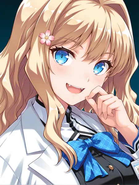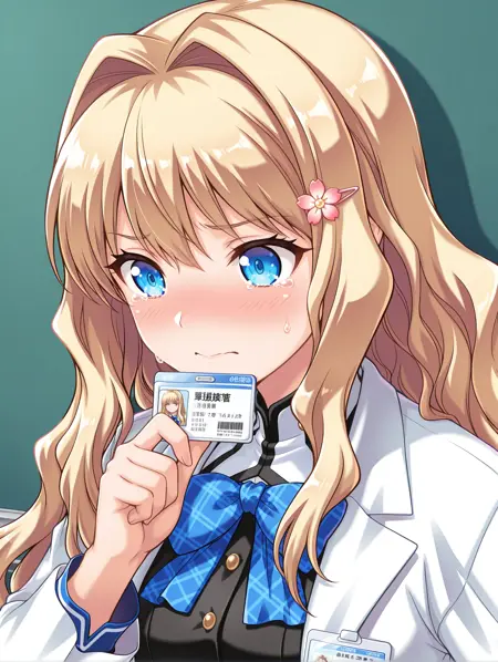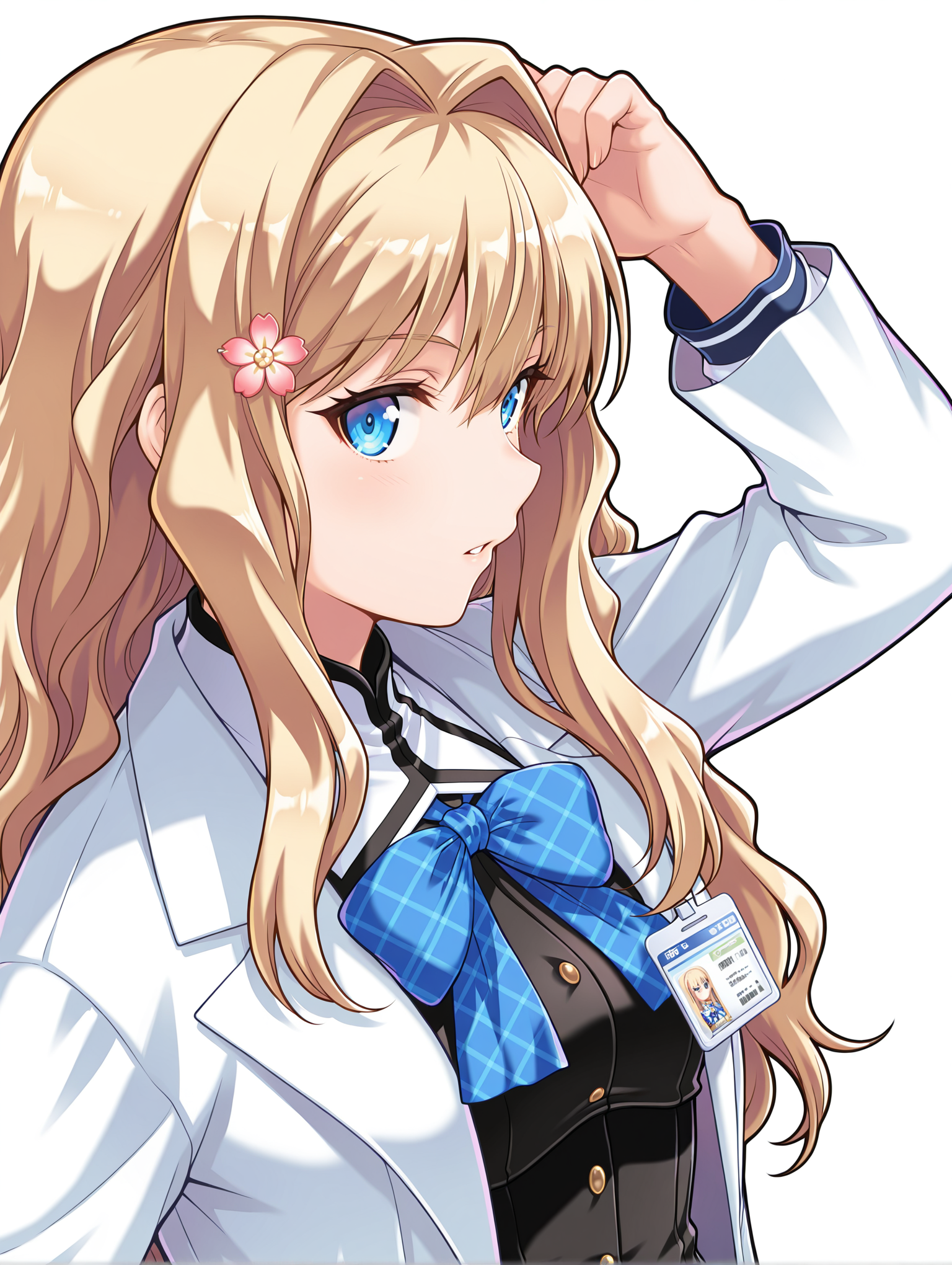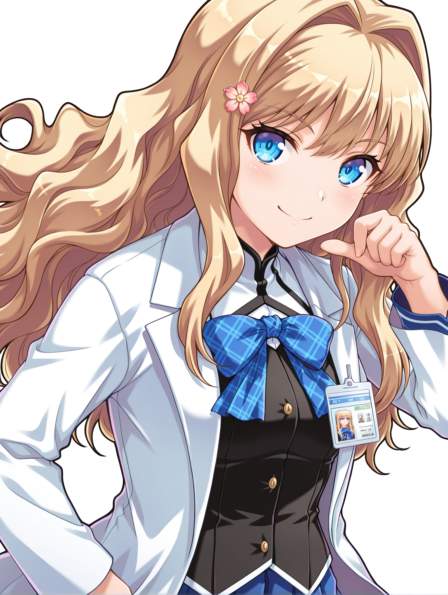 トリガーワード・t_g_s,hair intakes,hair ornament,blonde hair,blue eyes,wavy hair,long hair,