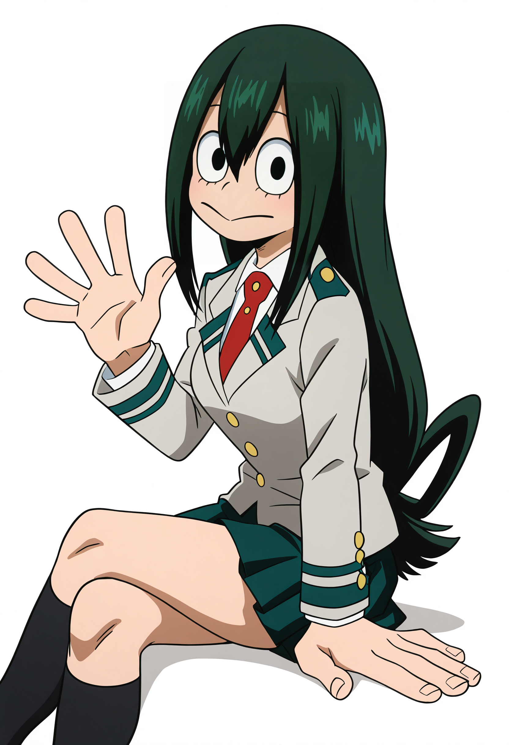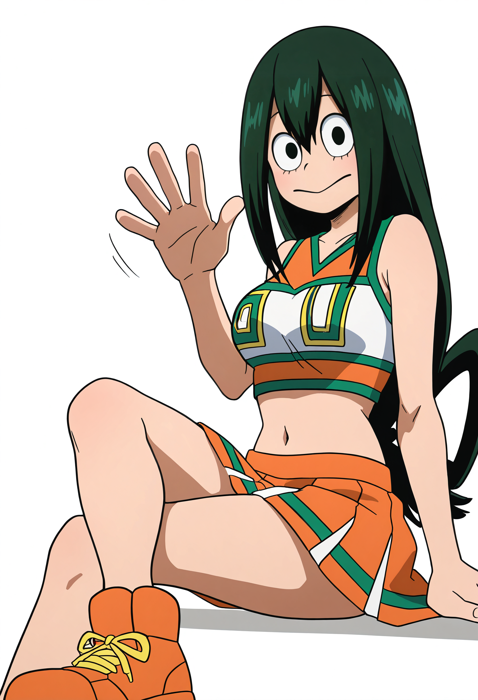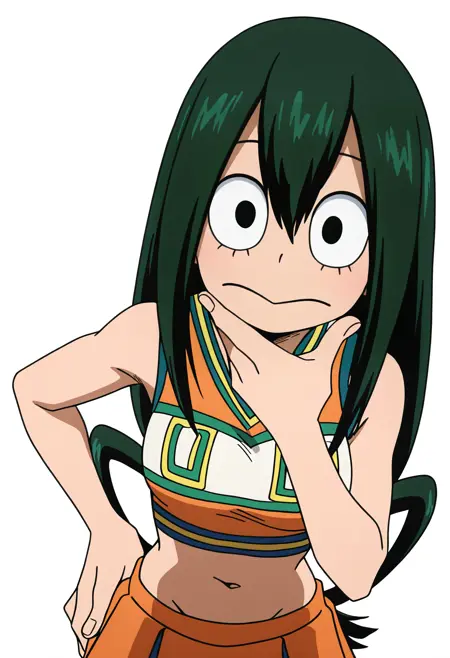 | トレーニングワード | My Hero Academia Style, 1girl, Tsuyu Asui, green hair, hair between eyes, long hair, sideburns, hair ribbon on back, black eyes, eyelashes, long mouth, orange cheerleader outfit, midriff, navel, sleeveless,コピーしました! My Hero Academia Style, 1girl, Tsuyu Asui, green hair, hair between eyes, long hair, sideburns, hair ribbon on back, black eyes, eyelashes, long mouth, UA Tracksuit, blue tracksuit, white clothes pattern, red sleeve decoration, short sleeves, pink sneakers,コピーしました! My Hero Academia Style, 1girl, Tsuyu Asui, green hair, hair between eyes, long hair, sideburns, hair ribbon on back, black eyes, eyelashes, long mouth, UA Highschool Uniform, grey jacket, white undershirt, green decorations, yellow buttons, dark-green skirt, black high socks, brown boots,コピーしました! My Hero Academia Style, 1girl, Tsuyu Asui, green hair, hair between eyes, long hair, sideburns, hair ribbon on back, black eyes, eyelashes, long mouth, Froppy Hero Outfit, beige headgear, green lenses on helmet, light-green bodysuit, dark-green pattern, yellow lines, big white gloves, white wristbands, white belt, black thigh highs, frog feet shoes, navel, long frog tongue,コピーしました! |