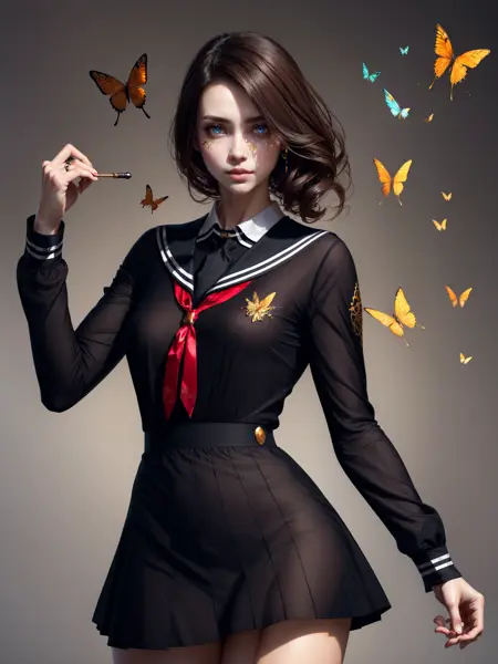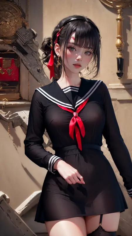 4.トリガー語:tutututu, black school uniform, black serafuku, sailor collar, black miniskirt, long sleeves。これらすべてを入力し、画像生成が正しく行われ、パラメータ設定に誤りがなく、他のLORAが干渉していない場合、ほぼ100%の確率でオリジナルの服を再現できます。