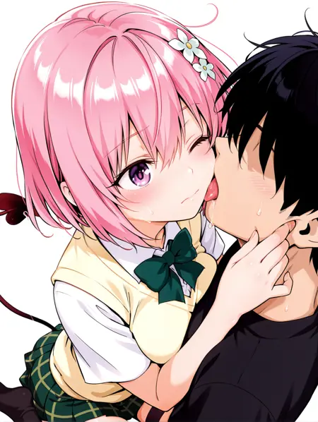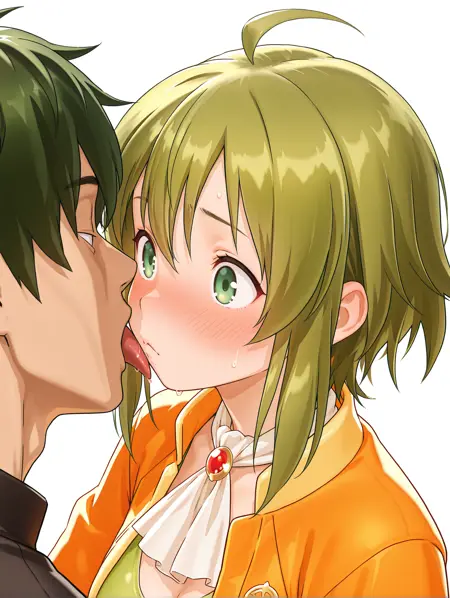 味見 ・l_a_f,1boy,face to face,tongue_out,