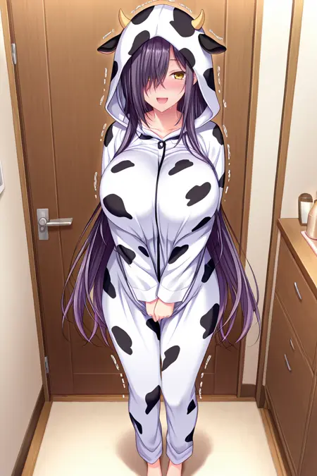 牛纹睡衣,全身睡衣,戴帽子,牛角