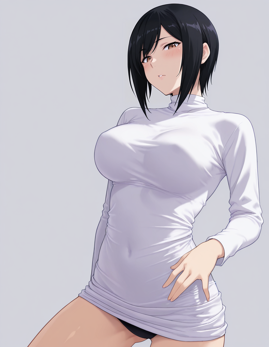 BJ가 입은 미니 사이즈의 LoRA 모델로, 미니멀한 드레스 복장입니다.