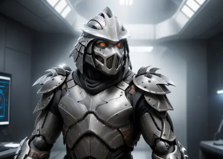 Depending on what your desire for outfit "a TMNTShredder 1man armored samurai knight with claw gauntlets, wearing a purple/red-purple outfit with pauldrons and metal samurai helmet with mask" (exchange purple or red-purple for whichever style you prefer, or exclude the highlighted text entirely to get more artistic variations of the outfit).