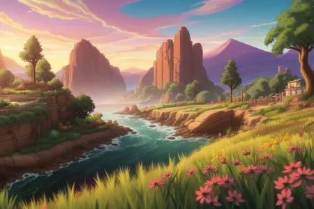 手绘风格的电子游戏画面效果,能为前景物体添加强烈的黑色轮廓线,并将背景物体模糊化,从而增强图像的纵深感。
