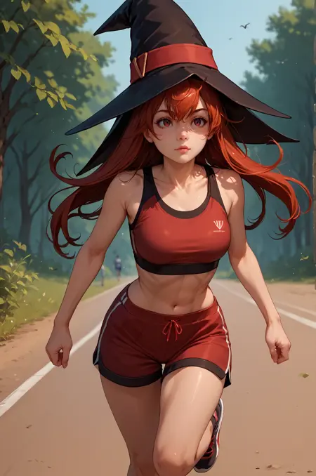 Prompting: cierra_(riviera), long_hair, dress, choker, gloves, witch_hat, red_eyes