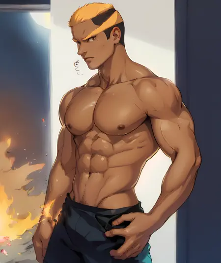 ポケモンブラック・ホワイトの黄色い髪の筋肉質なキャラクター、マーシャルを作成しました。マーシャルはウナのエリートフォーの一人で、戦闘タイプを得意としています。冷静で真剣な口調で知られています。なぜこのキャラを作ったのか自分でもわかりませんが、作ってしまいました。データセットには、GoogleとPixivから彼の120枚以上の画像を使用しました。