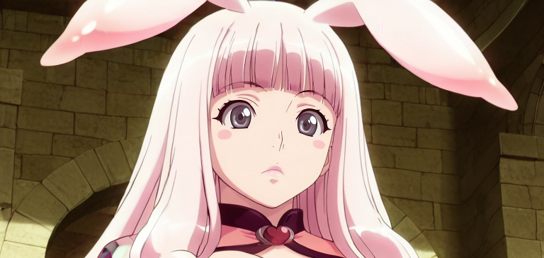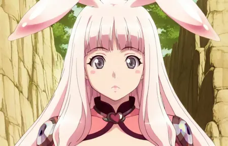 Melona_(Queen's blade), blush stickers, pink hair, grey eyes,