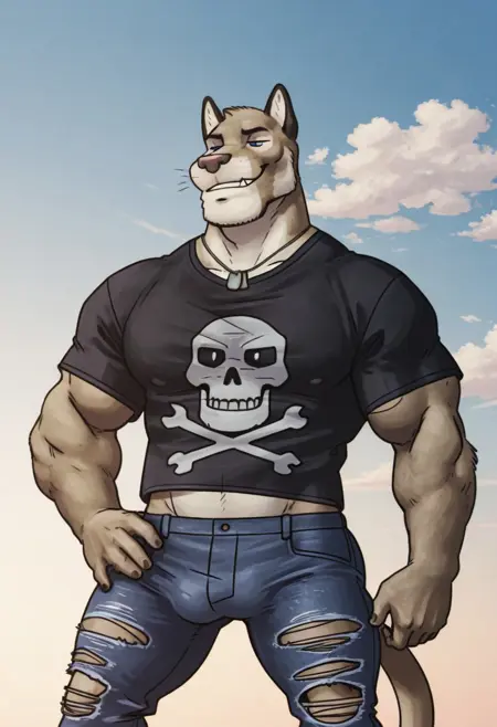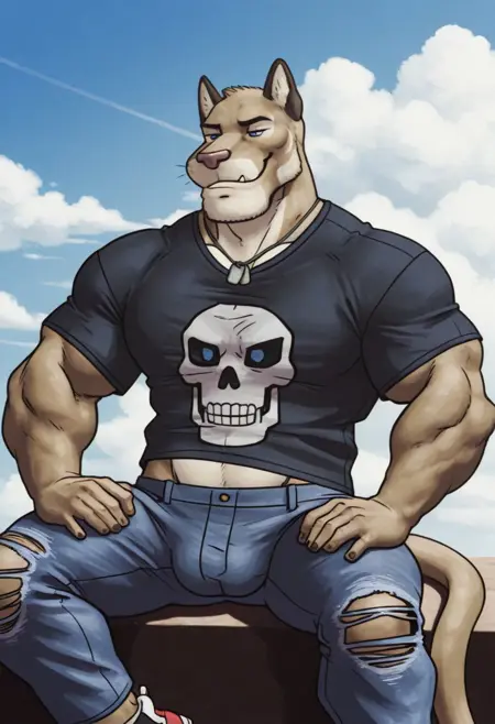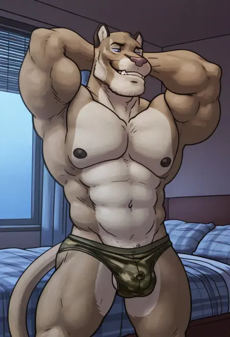 강화 프롬프트: "푸리, 남성, 파란 눈, 쿠거 꼬리, 수염, 수염날"
