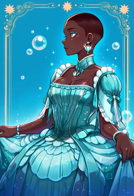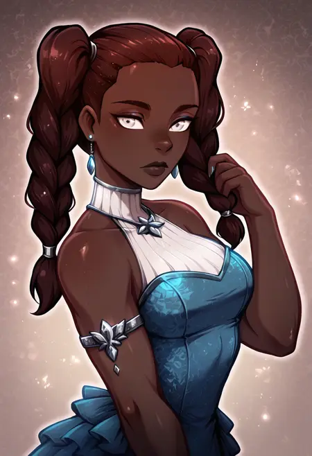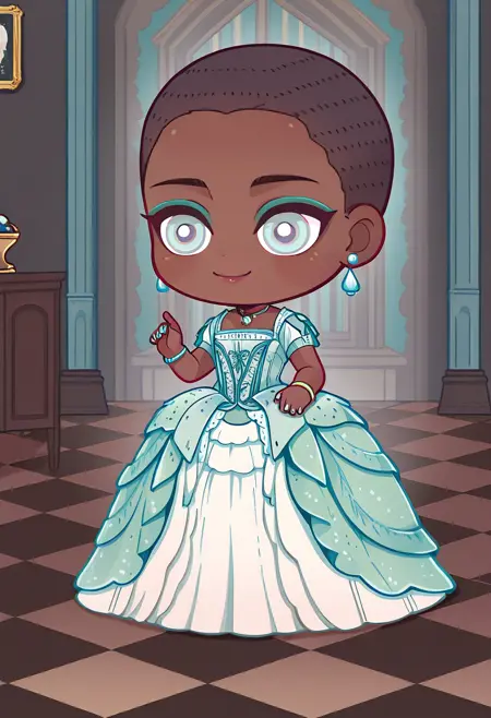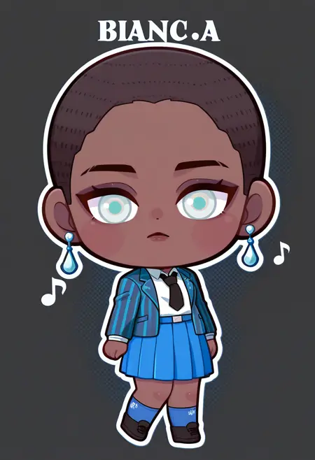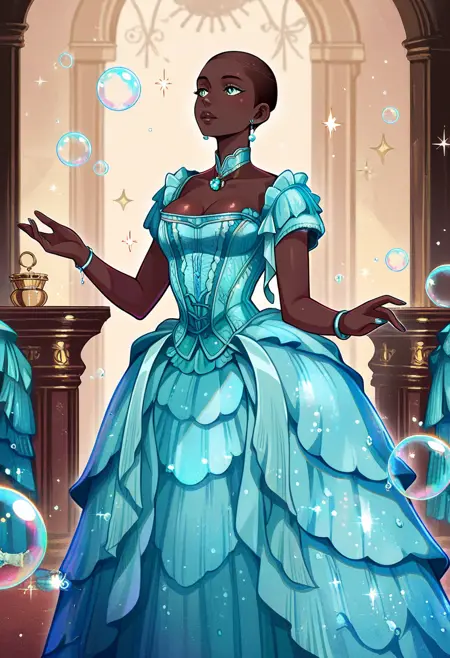 一个基于插画训练的Bianca Barclay角色LoRa。我用于训练的一些图像包含了她在第一季和第二季所穿的球裙。虽然这些裙子没有完全完美地融入,但至少看起来相似。