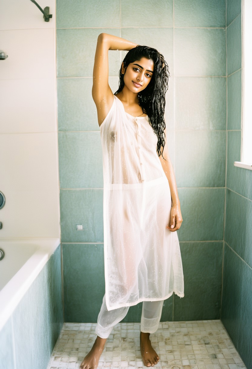 サラワール・カミーズは、南アジアの女性(パキスタン、インド、バングラデシュ)が伝統的に着る衣装です。これは「サラワール」と呼ばれるズボンと「カミーズ」と呼ばれるチュニックで構成されています。伝統的に、サラワールのズボンは長くゆったりとしたシルエットで、足首の上の部分が狭く仕立てられ、 cuffs( cuffs )のように縫い付けられています。これは、以前のFlux LORAをChroma用に同じコンセプトでアレンジしたものです。このLORAは、サラワール・カミーズを着た女性の正確なAIアートを生成します。このLORAのキーワードは以下の通りです—