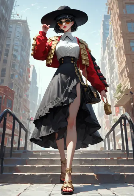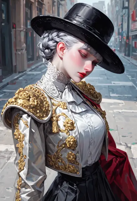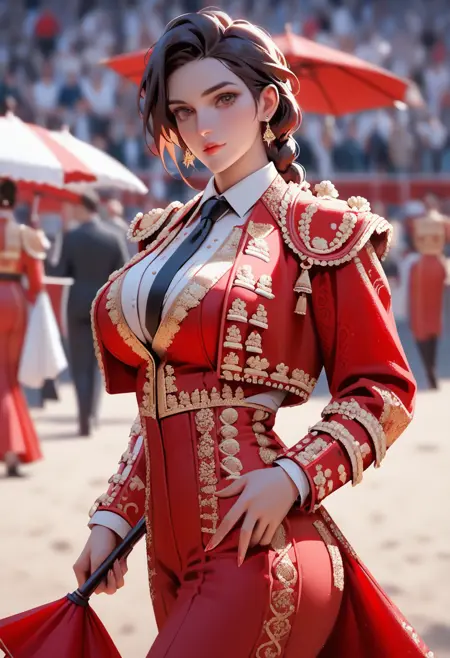 This model can be used to recreate the whole bullring locale as well as just the outfit depending on the prompting keywords. Doesn't work so well with stock Pony model. I highly suggest using Duchaitens.