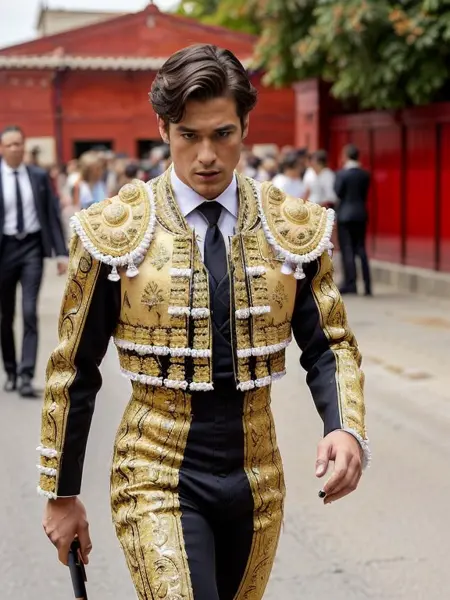This lora produces bullfighting costumes. It's kind of rough. Use at full strength. Use the keyword tr4j3, and combinations of colors and metal. For example, "salmon pink and gold" or "black and silver" along with "traje de luces". The first version works well, but tends to want to show a behind view. Future versions will correct this. Enjoy!