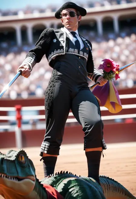 该模型可根据提示关键词用于还原整个斗牛场场景,或仅生成服装。与原始 Pony 模型配合效果不佳,强烈建议使用 Duchaitens 模型。