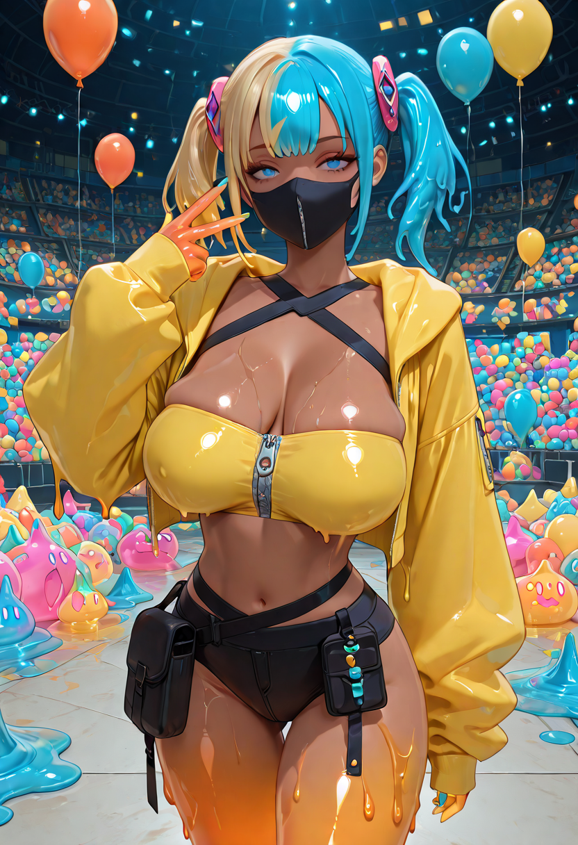 Another slime concept! This is intended to help create slime girls that are more "structured"; not fully slime, retaining their general shape while having slime-like features (gradient skin, etc.) that work with clothes. LoRA is intended to be used with other LoRAs, but you can use it on it's on as well.