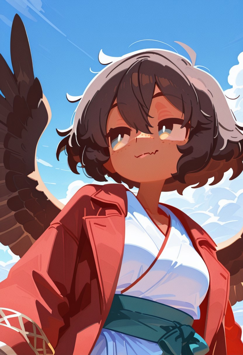 在Feng的WAO风格图像上进行训练,Feng是一个长有翅膀的原创人类角色