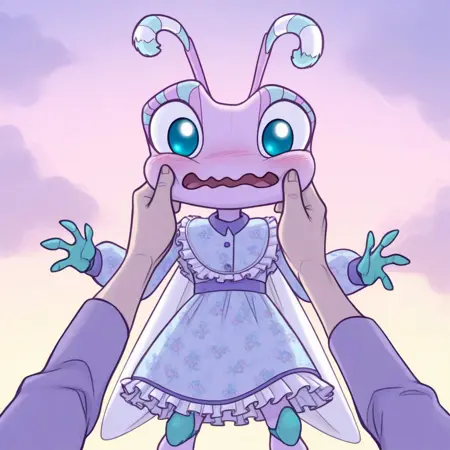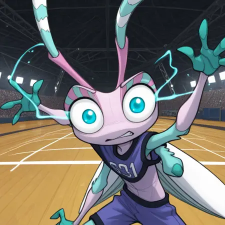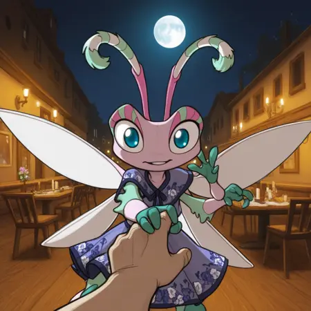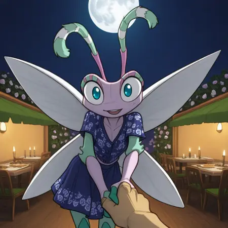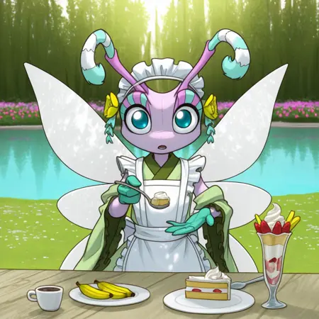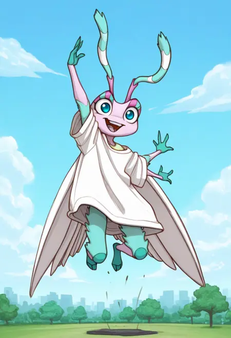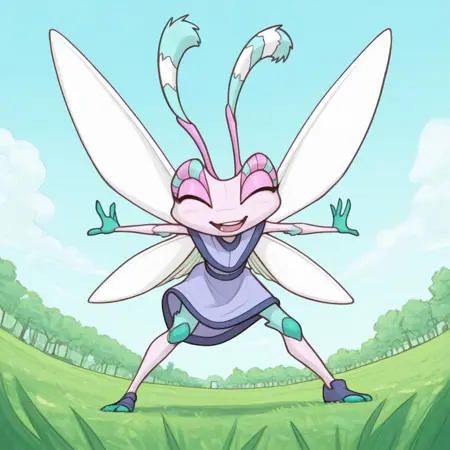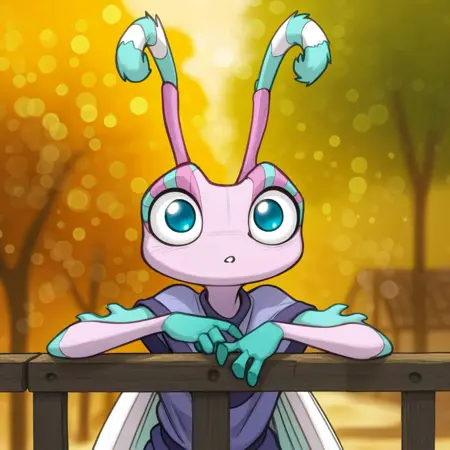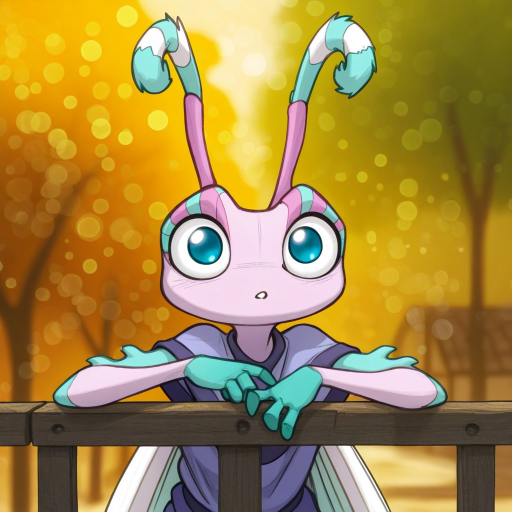 1girl, solo, furry, furry female, antennae, extra arms, wings, blue eyes,