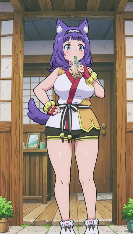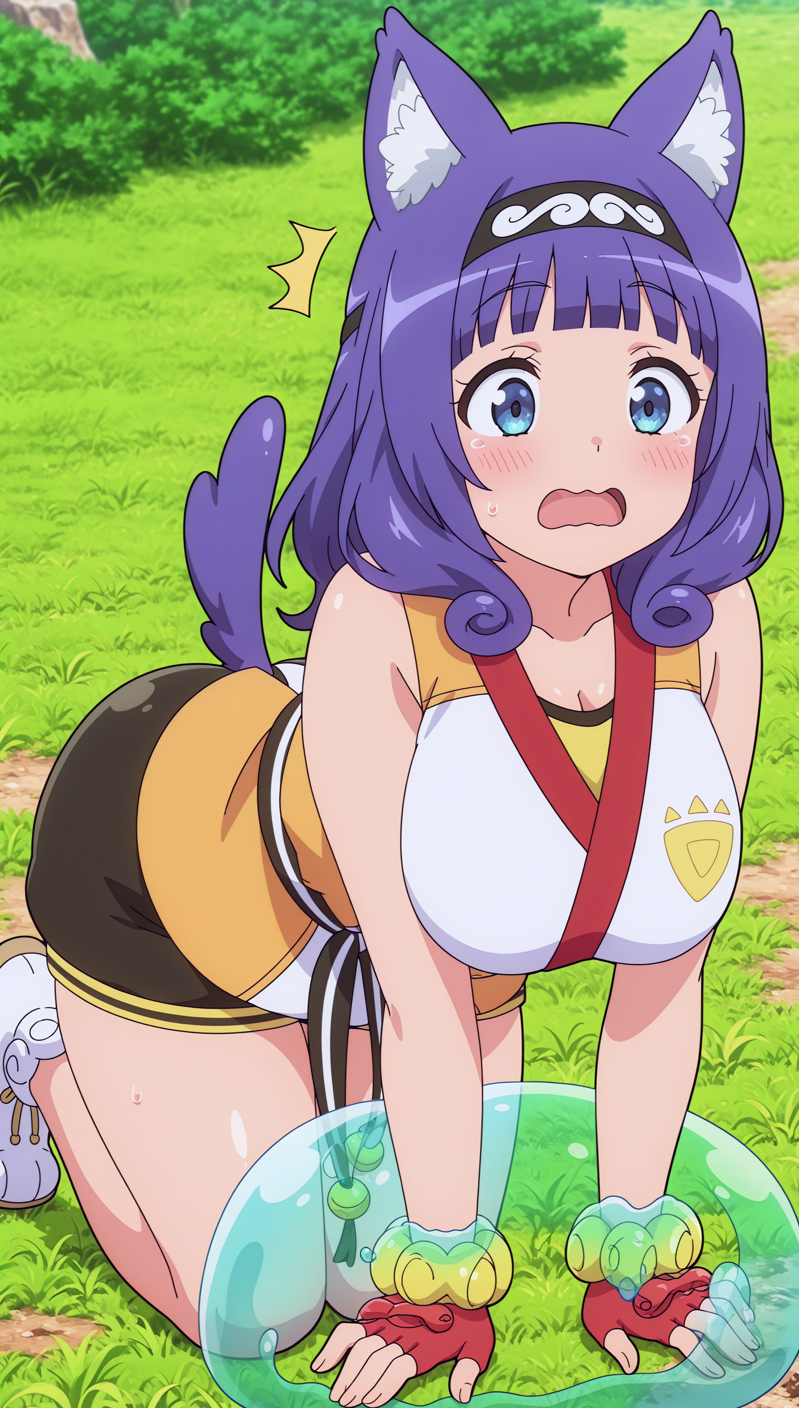 可选词:无指手套、红色手套、和服、动物耳朵绒毛、尾巴、短裤、鞋子