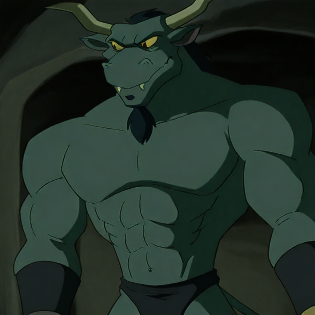 90年代のアニメシリーズ『ミイラ』から来的のミノタウロス。1999年の映画『ミイラ』を原作とし、LoRAで。