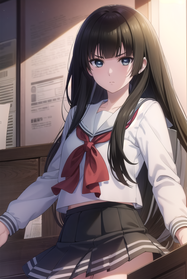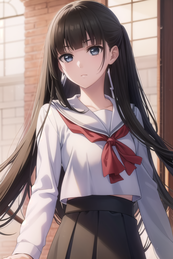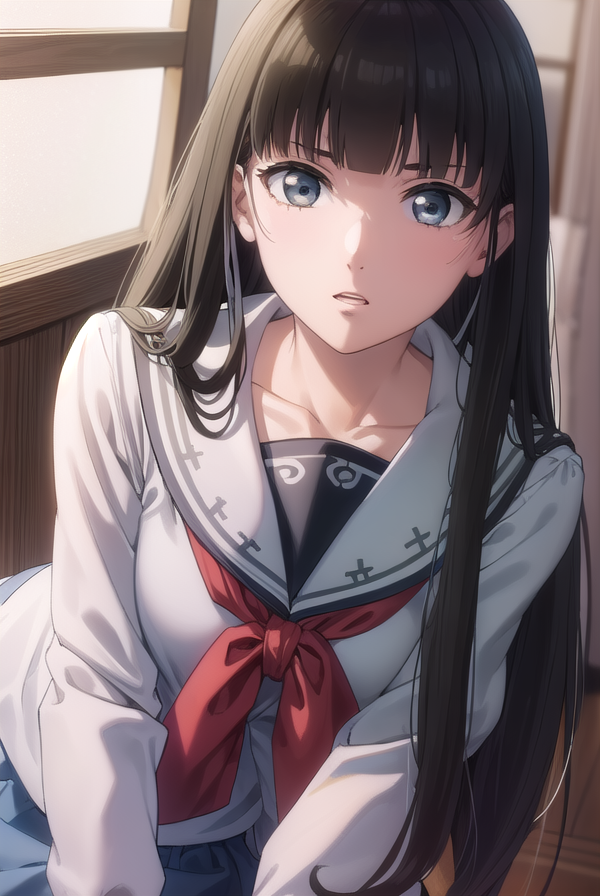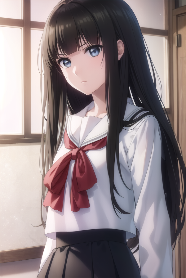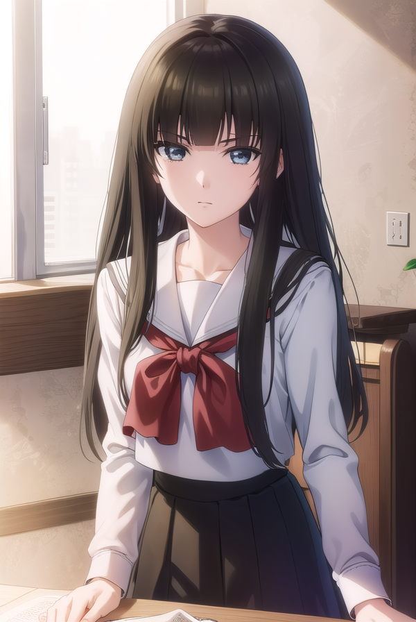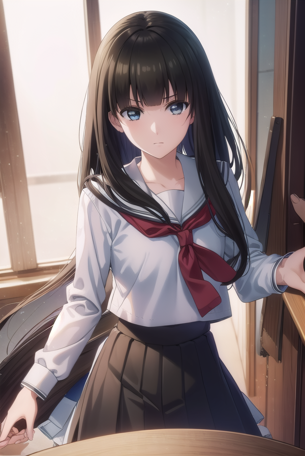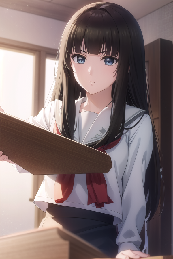 mikoto kuga, long hair, bangs, black hair, blunt bangs, (black eyes:1.3),