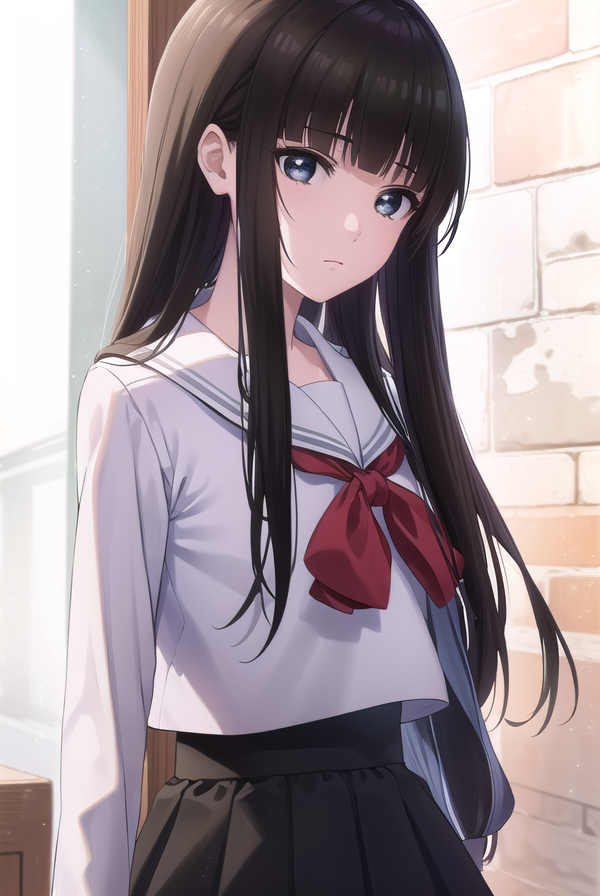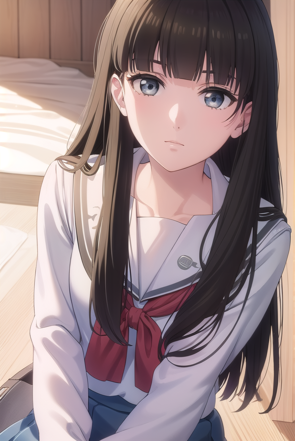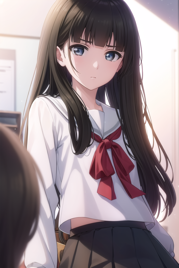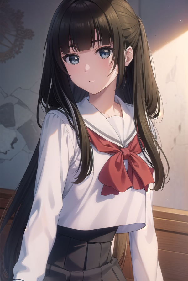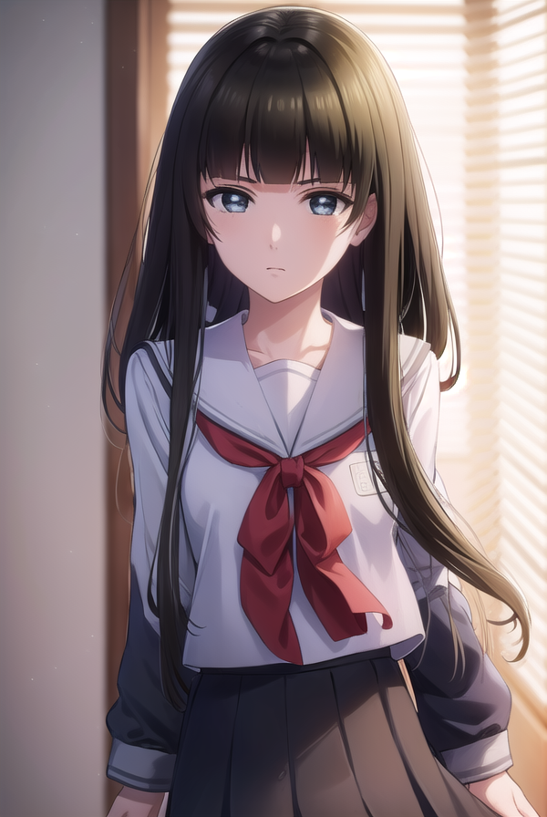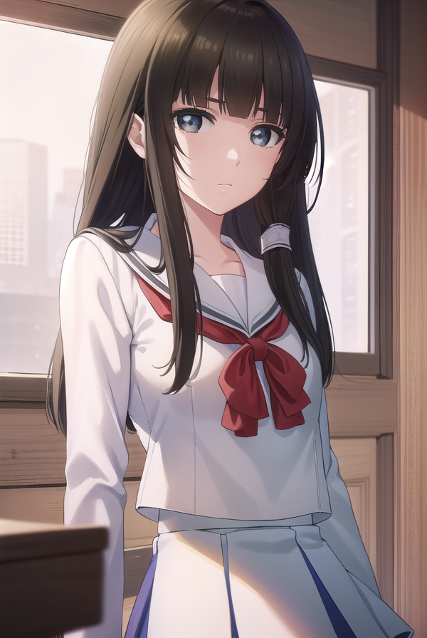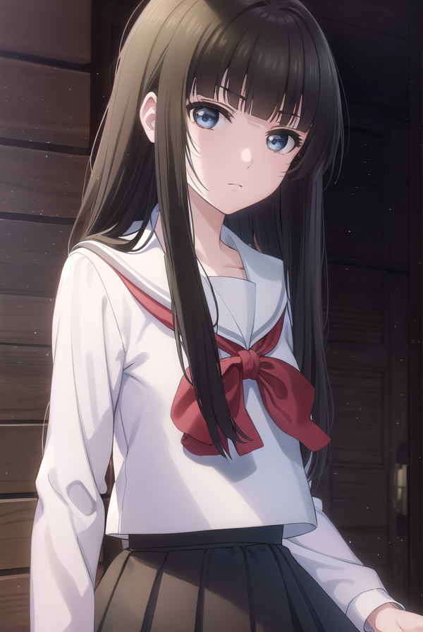 mikoto kuga, long hair, bangs, black hair, blunt bangs, (black eyes:1.3),