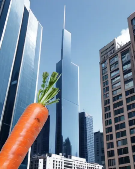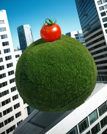 Cylindrical or conical vegetables are usually photographed lying down. However, with this LoRA, you can skewer the vegetables and photograph them vertically, like a skyscraper.