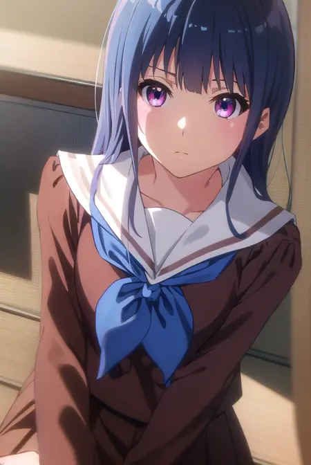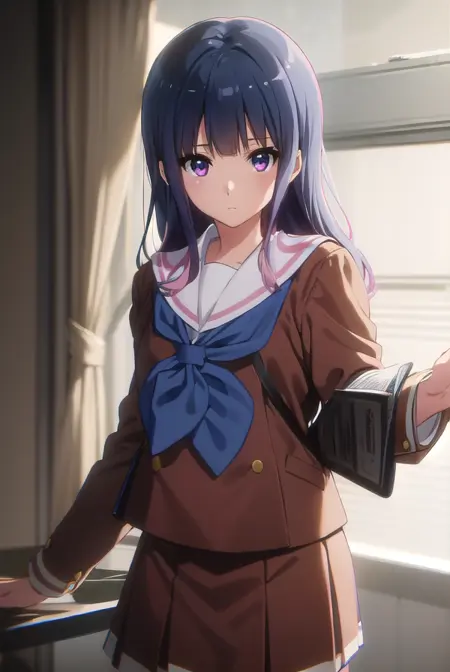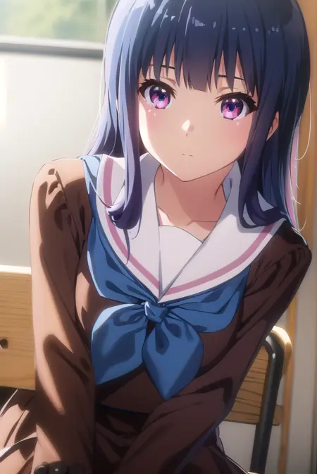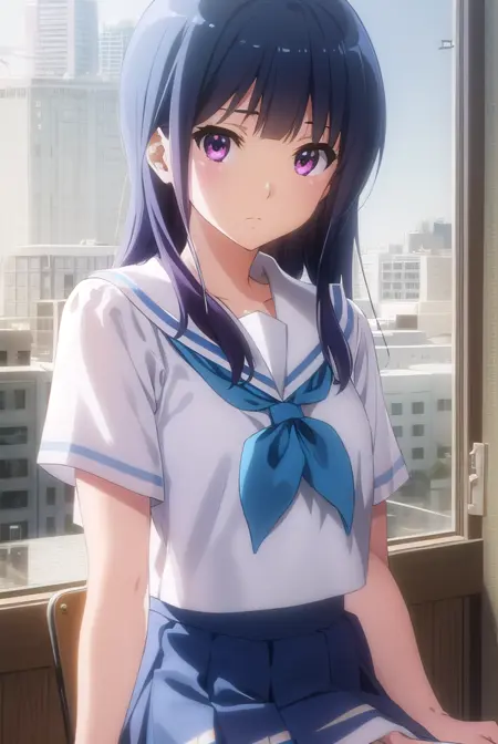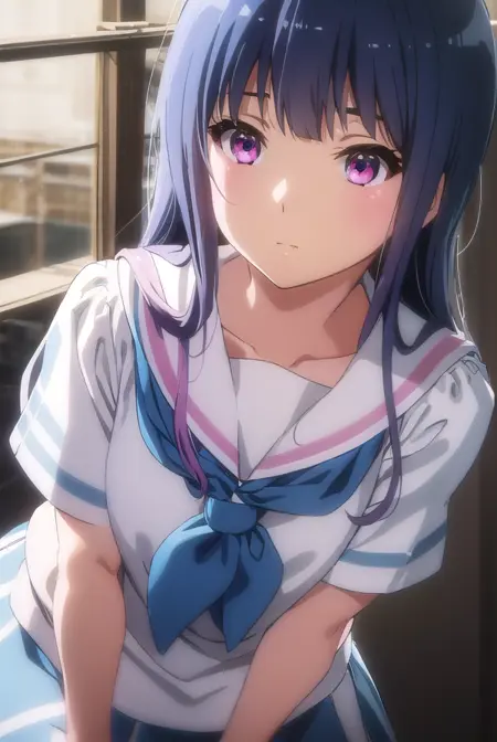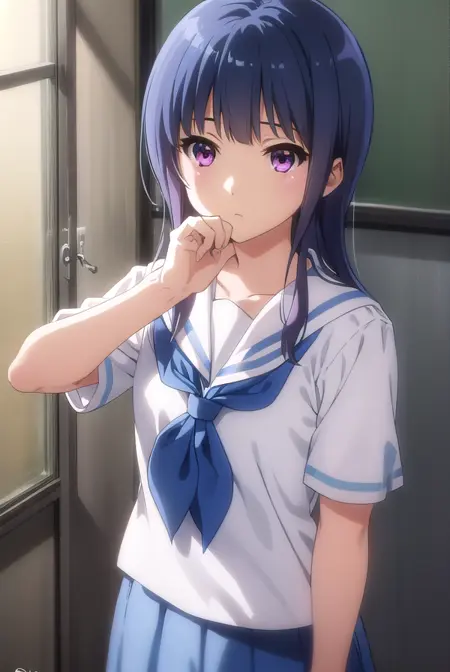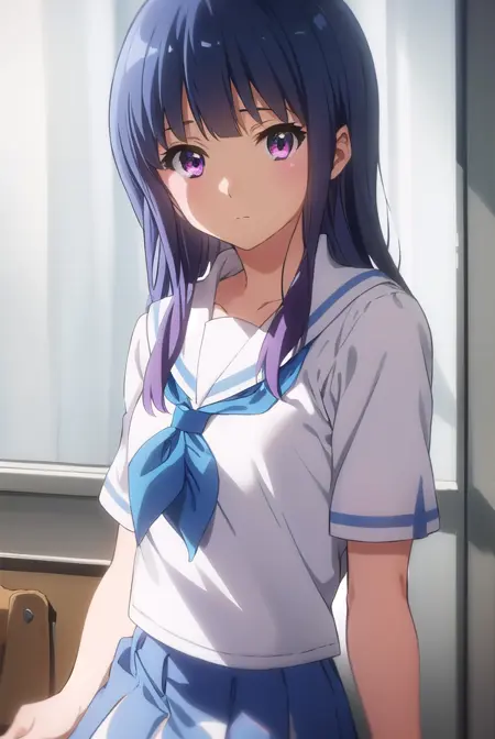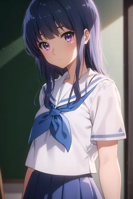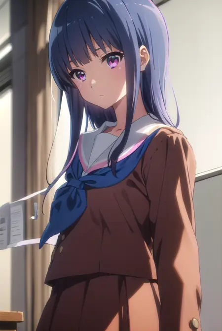 mizore yorizuka, yoroizuka mizore, 긴 머리, 앞머리, 파란 머리, (분홍 눈:1.3),