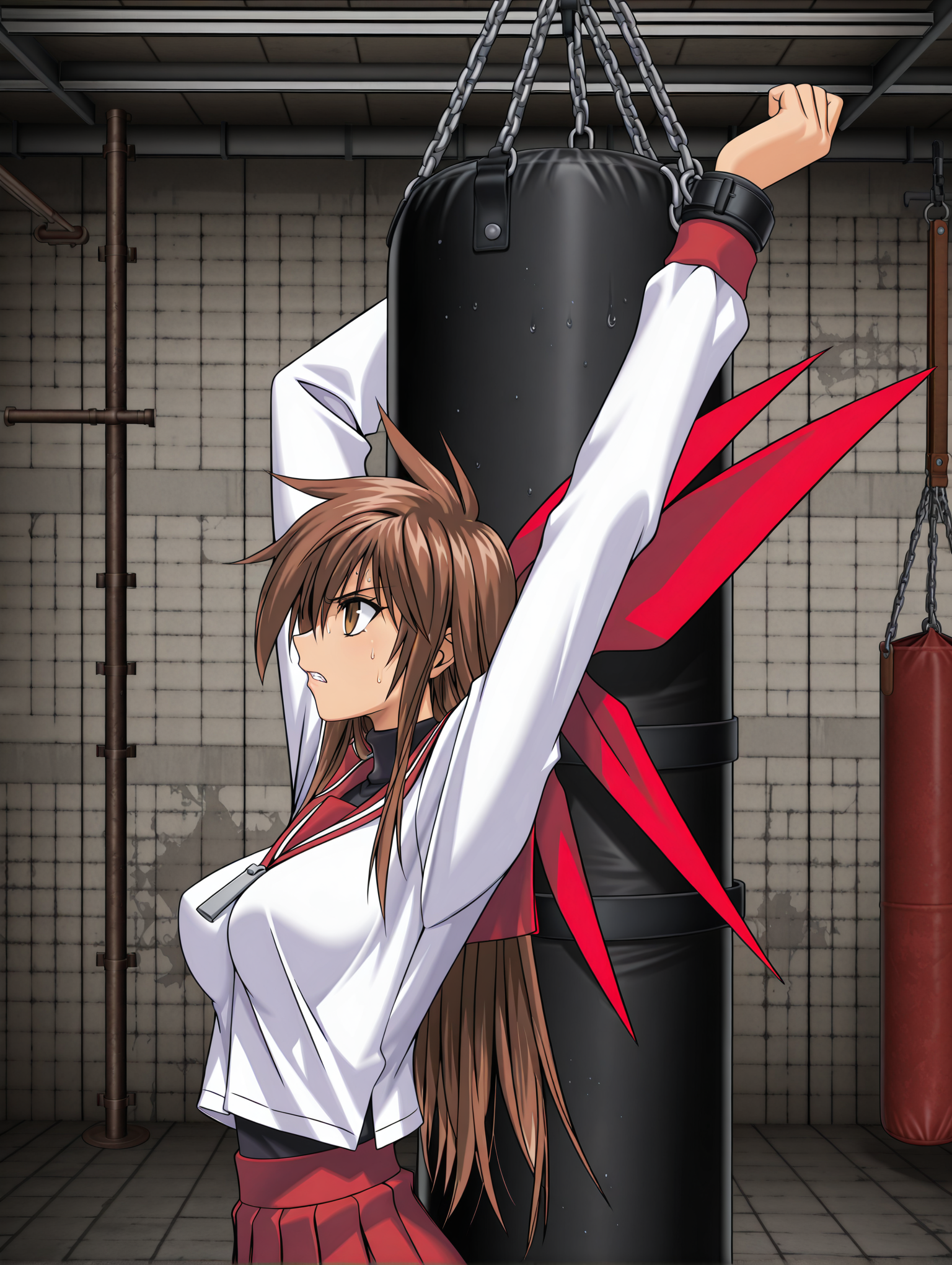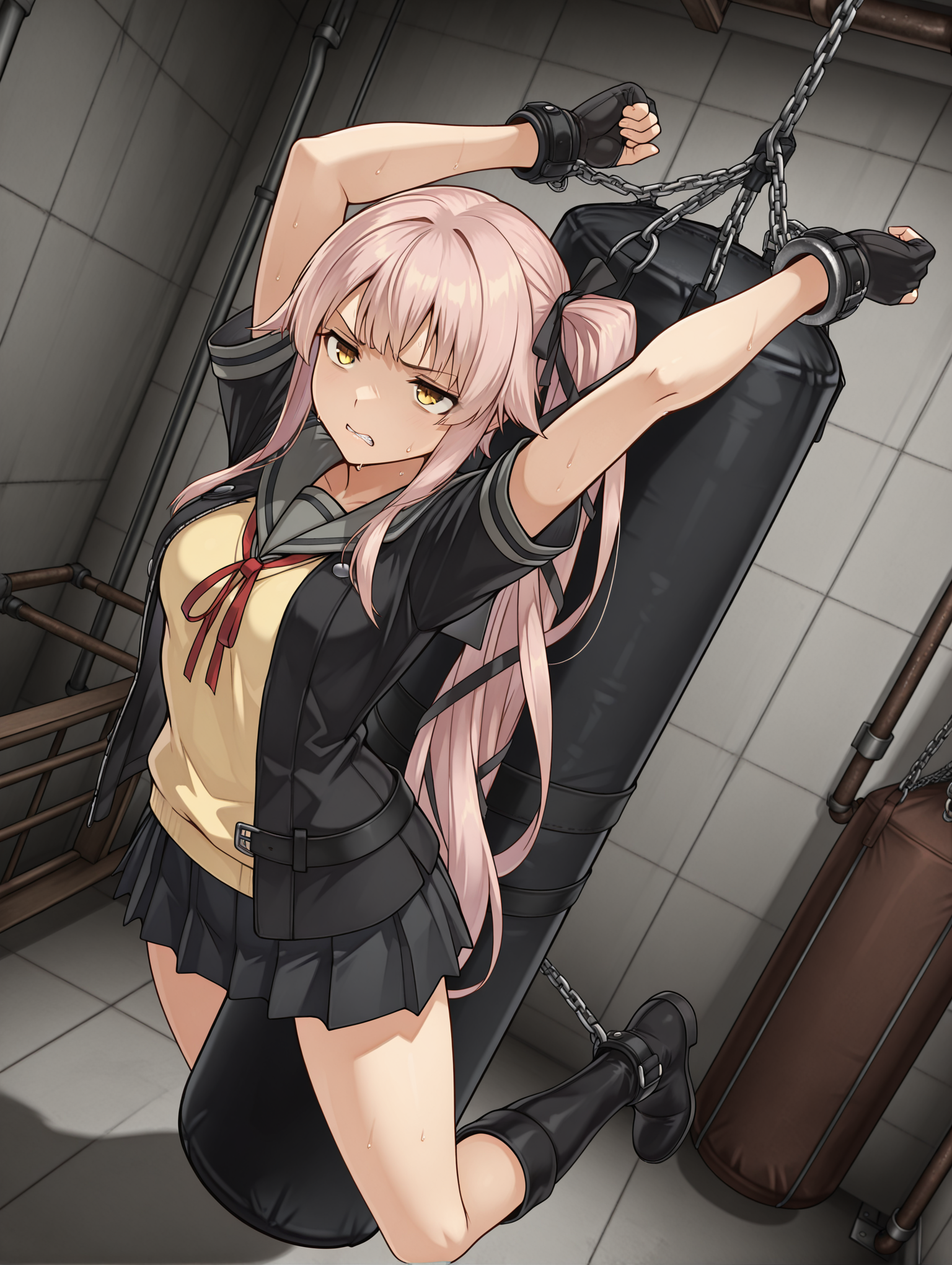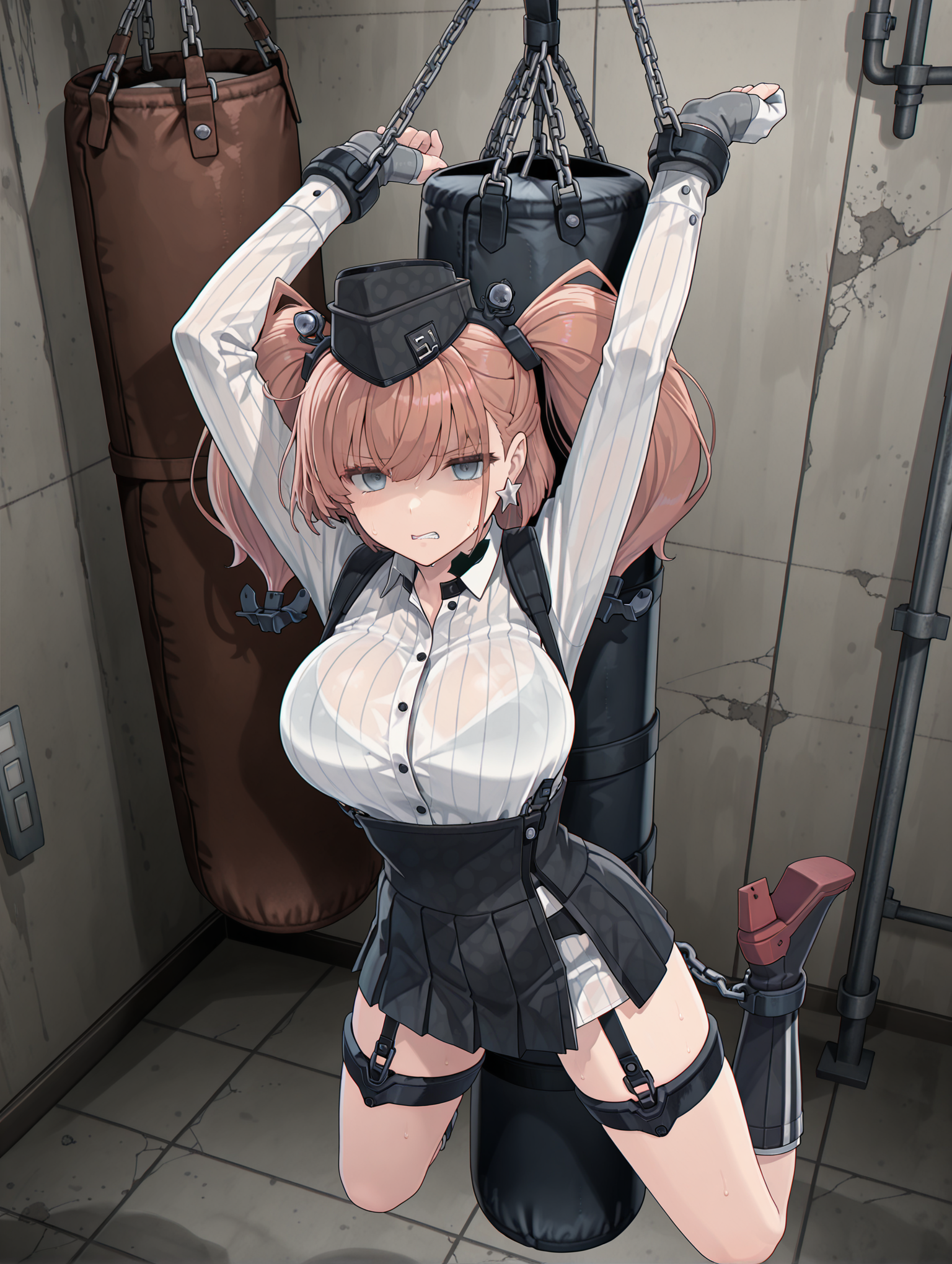 触发词 ・s_b_e,chain,punching bag,stationary restraints,bdsm,bound,cuffs,arms up,bound ankles,