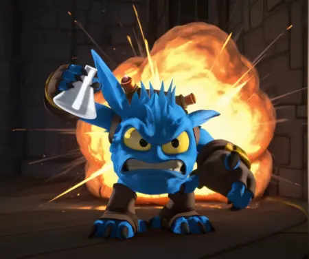 Body: "slpopfizz, monster, waddling head, head tuft, long ears, noseless, toony, yellow sclera, 4 fingers, claws, toe claws, 4 toes, heel claw, teeth, fangs, lazy eye"