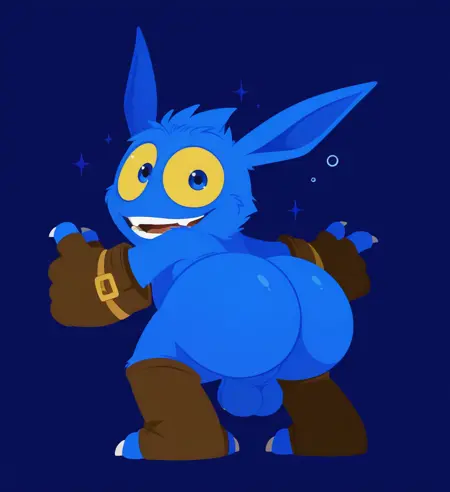 If you want him to resemble the video game, use "blue fur, black eyes"