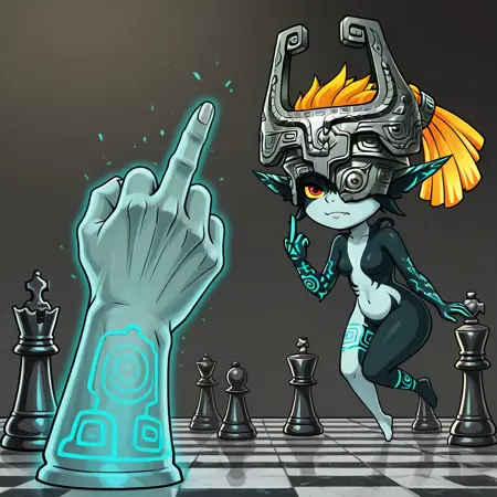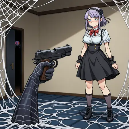 이 LoRA는 Yu-Gi-Oh 게임의 "Called by the Grave" 카드를 풍자합니다. 원본에서는 땅에서 녹색 손이 나와 충격에 빠진 마법사를 가리킵니다. (O﹏O)
